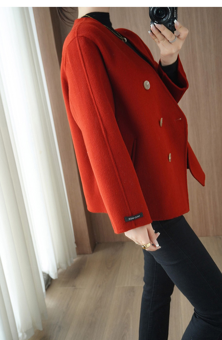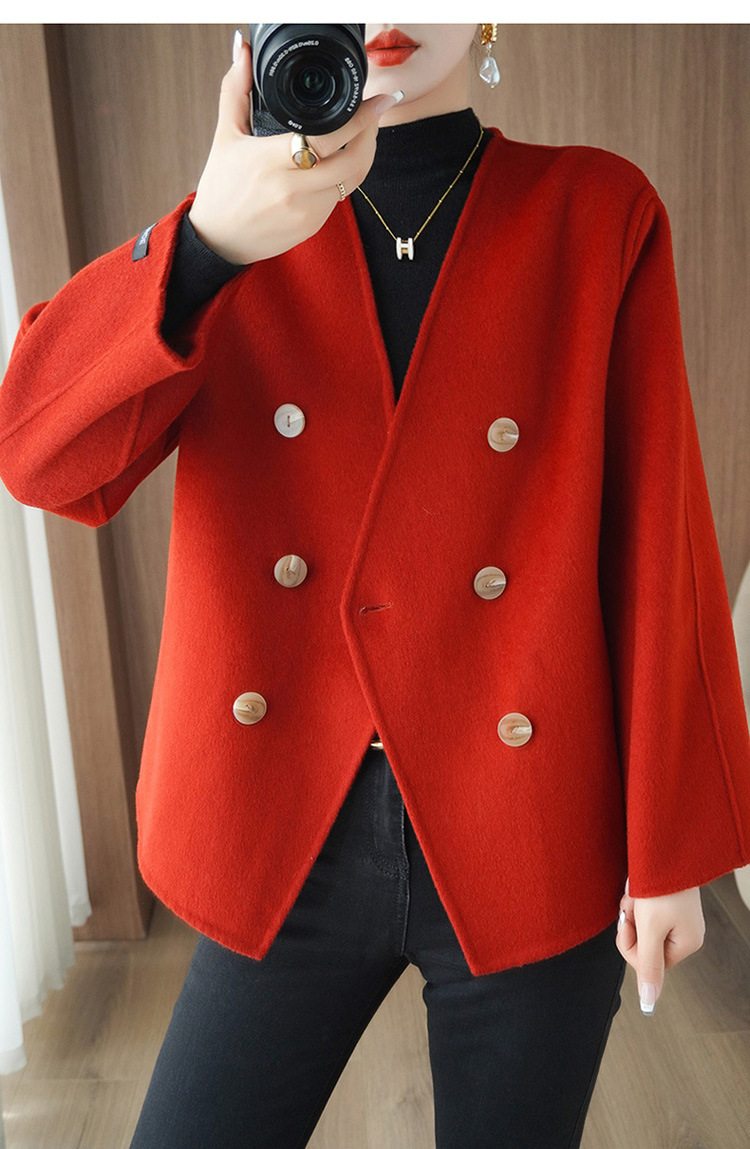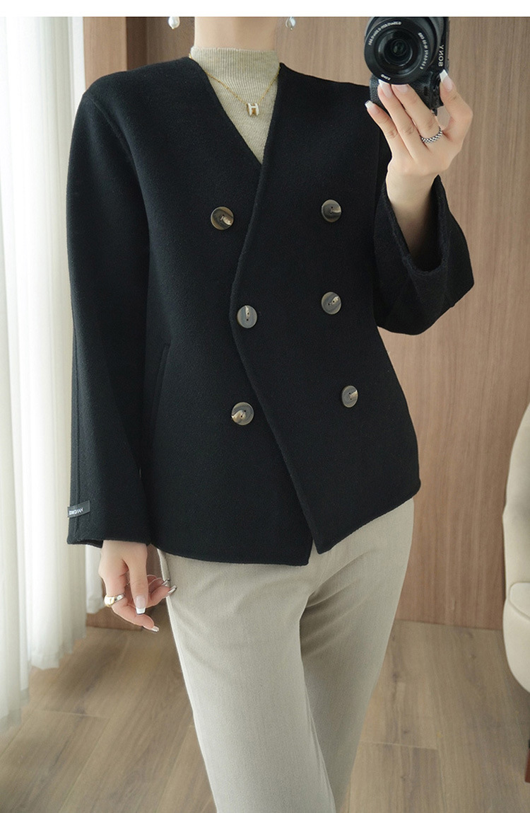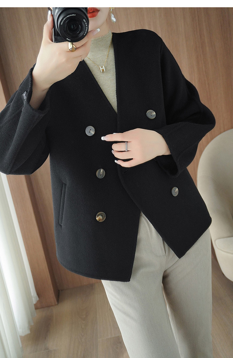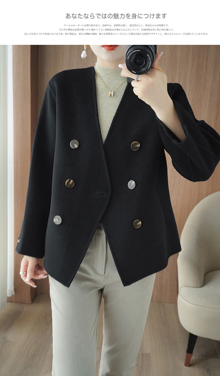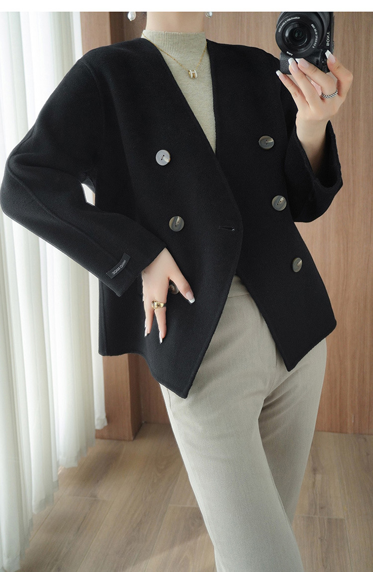 24種類の小香風vネック両面ウールコート女性の短い気質英倫風ゆるい厚手のカシミヤコート