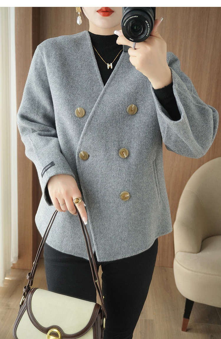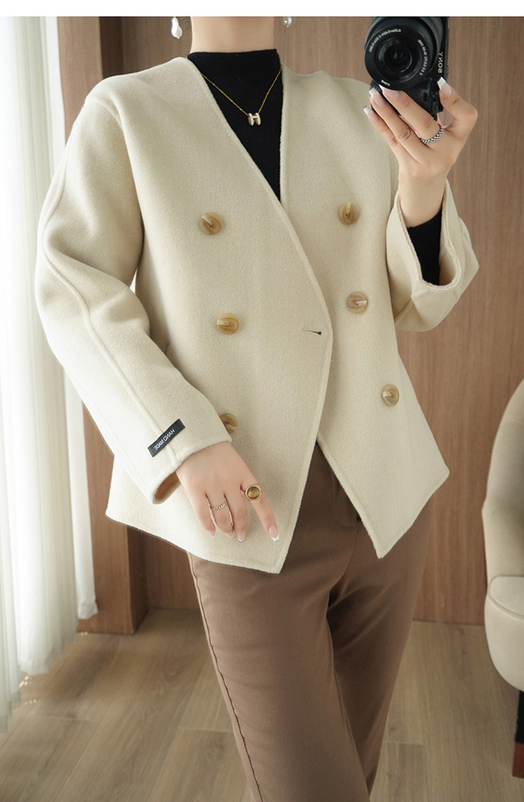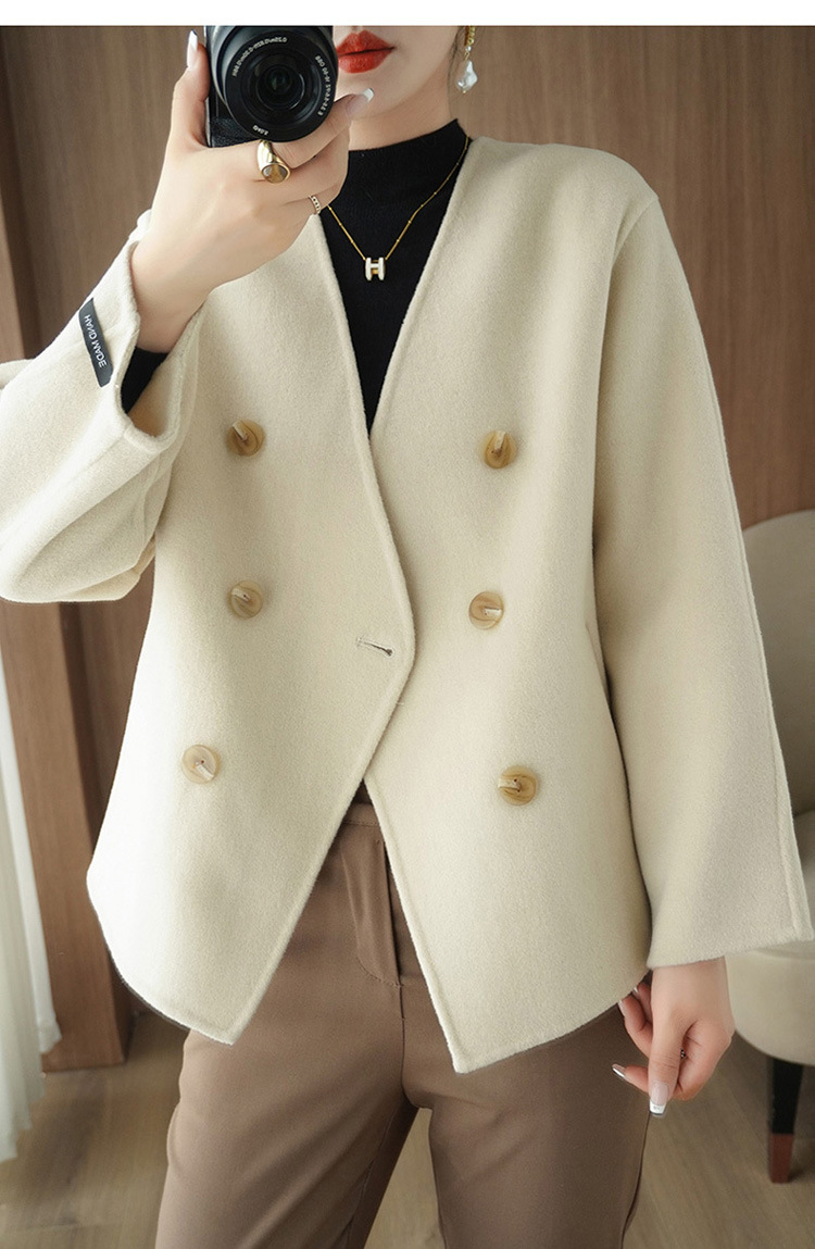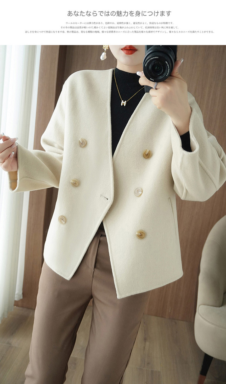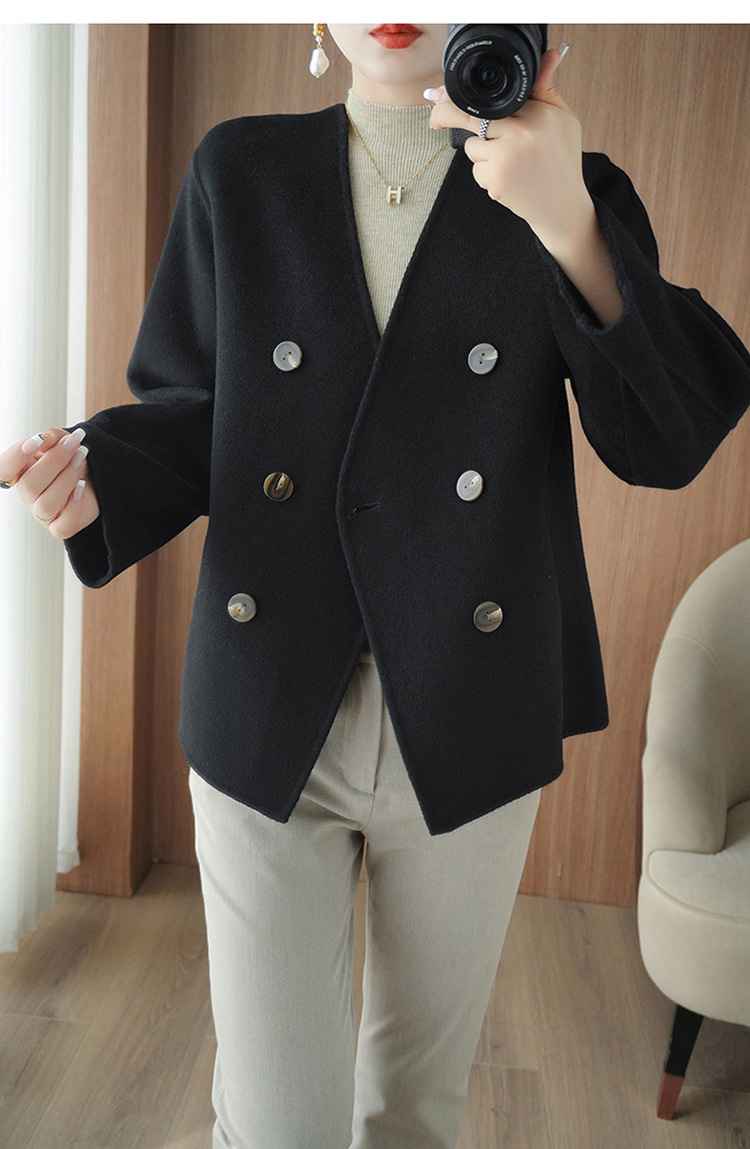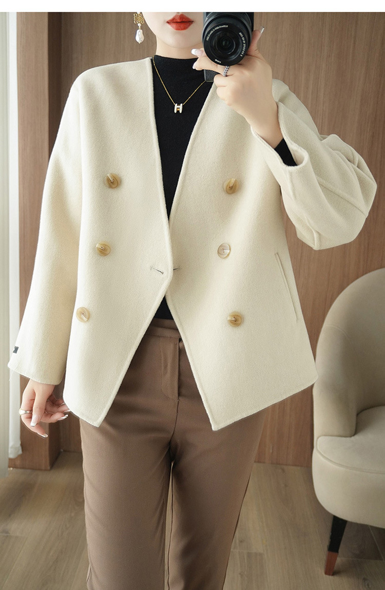 24種類の小香風vネック両面ウールコート女性の短い気質英倫風ゆるい厚手のカシミヤコート