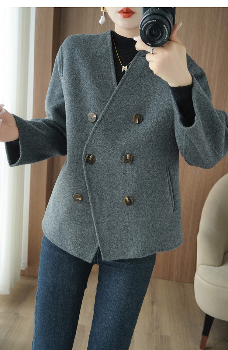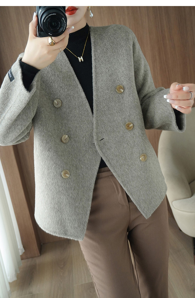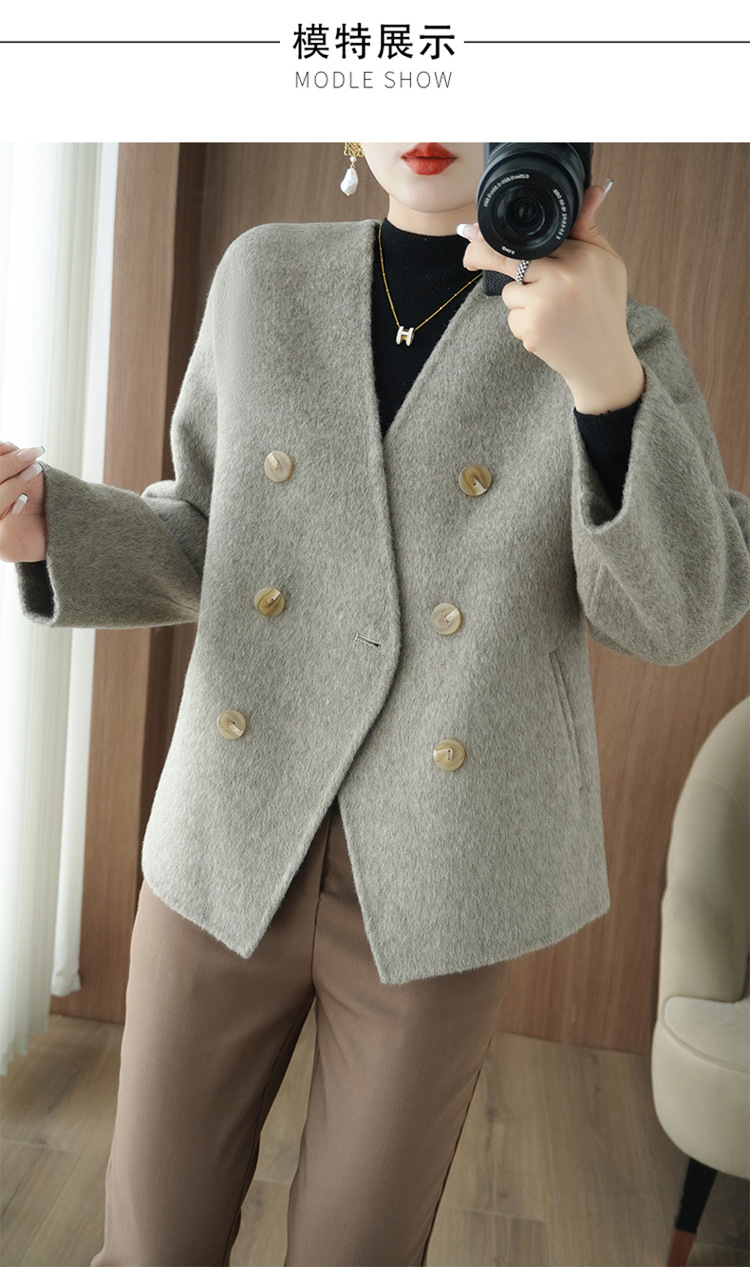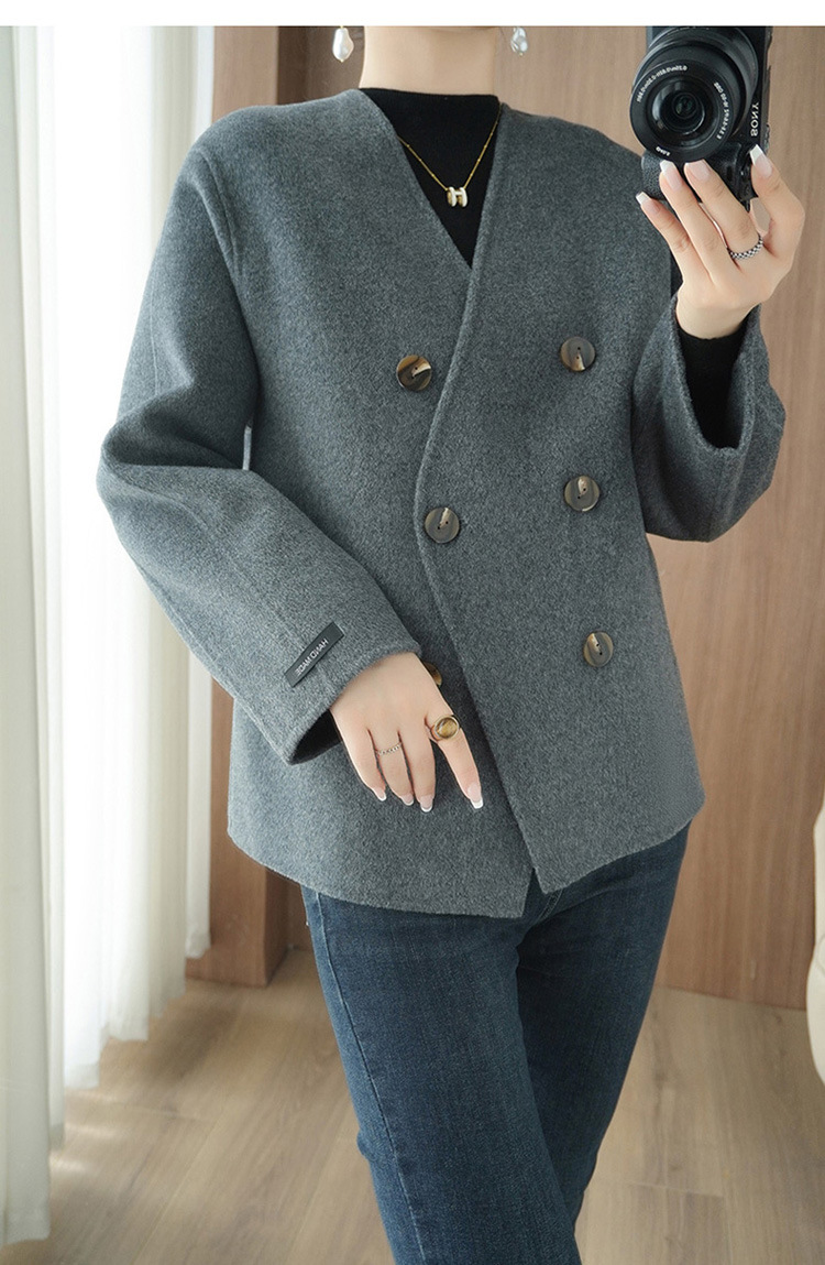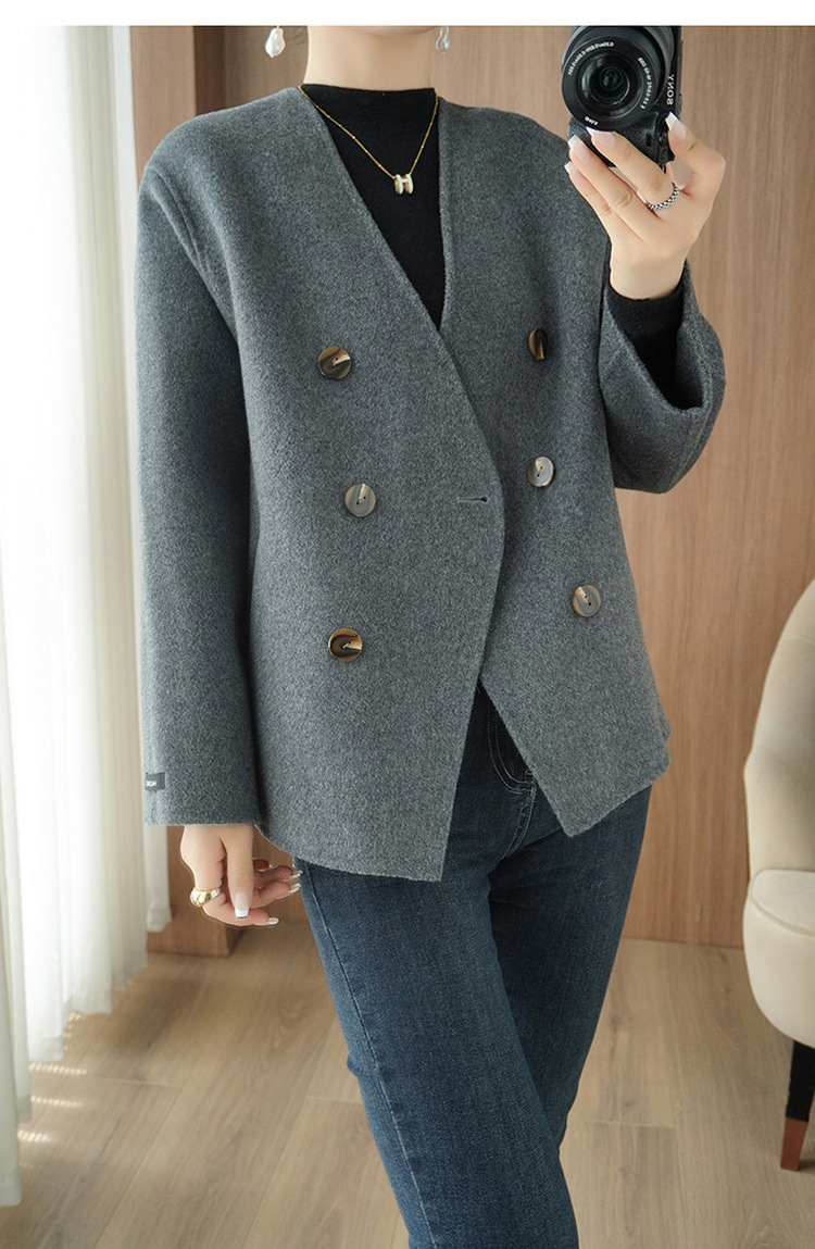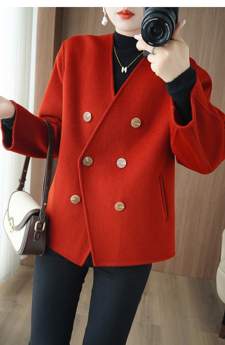 24種類の小香風vネック両面ウールコート女性の短い気質英倫風ゆるい厚手のカシミヤコート