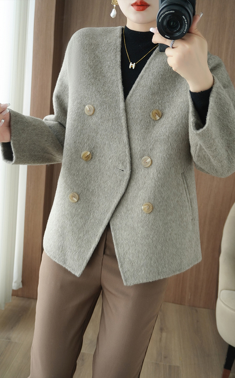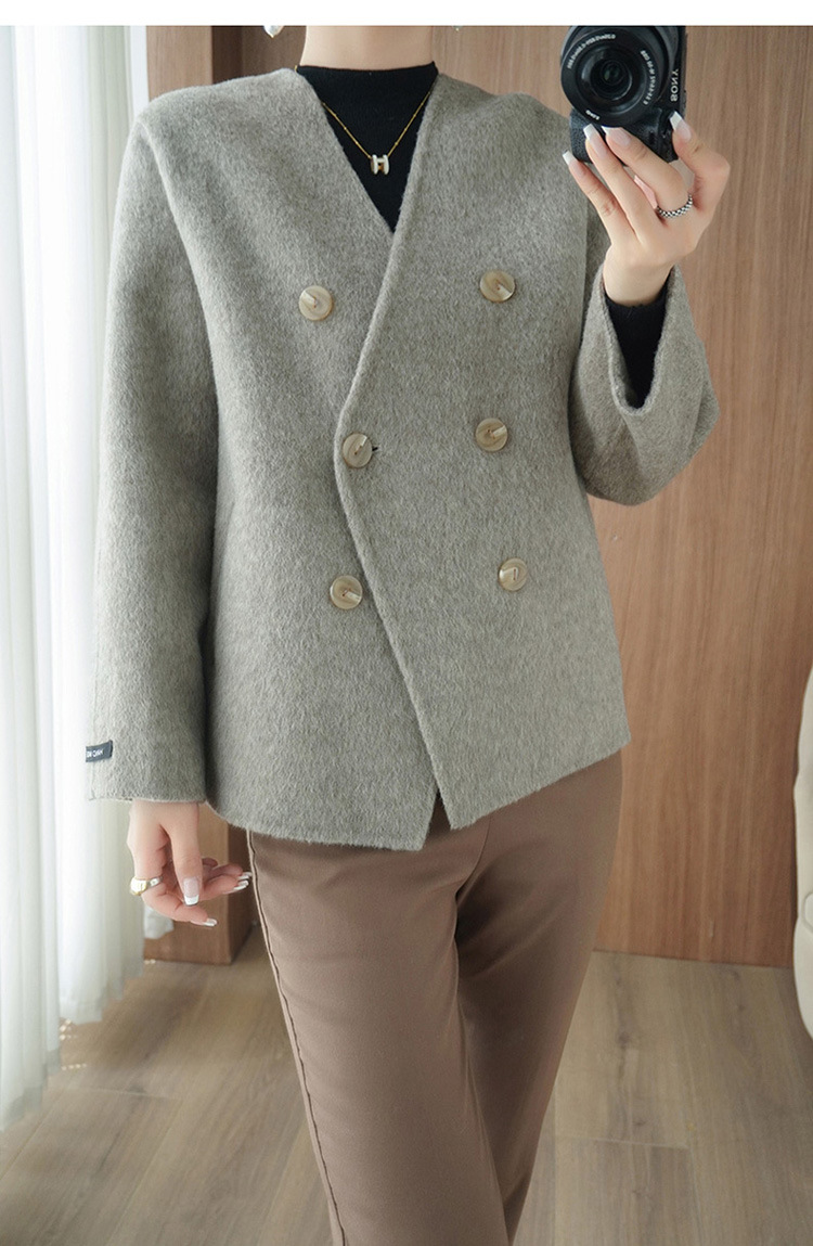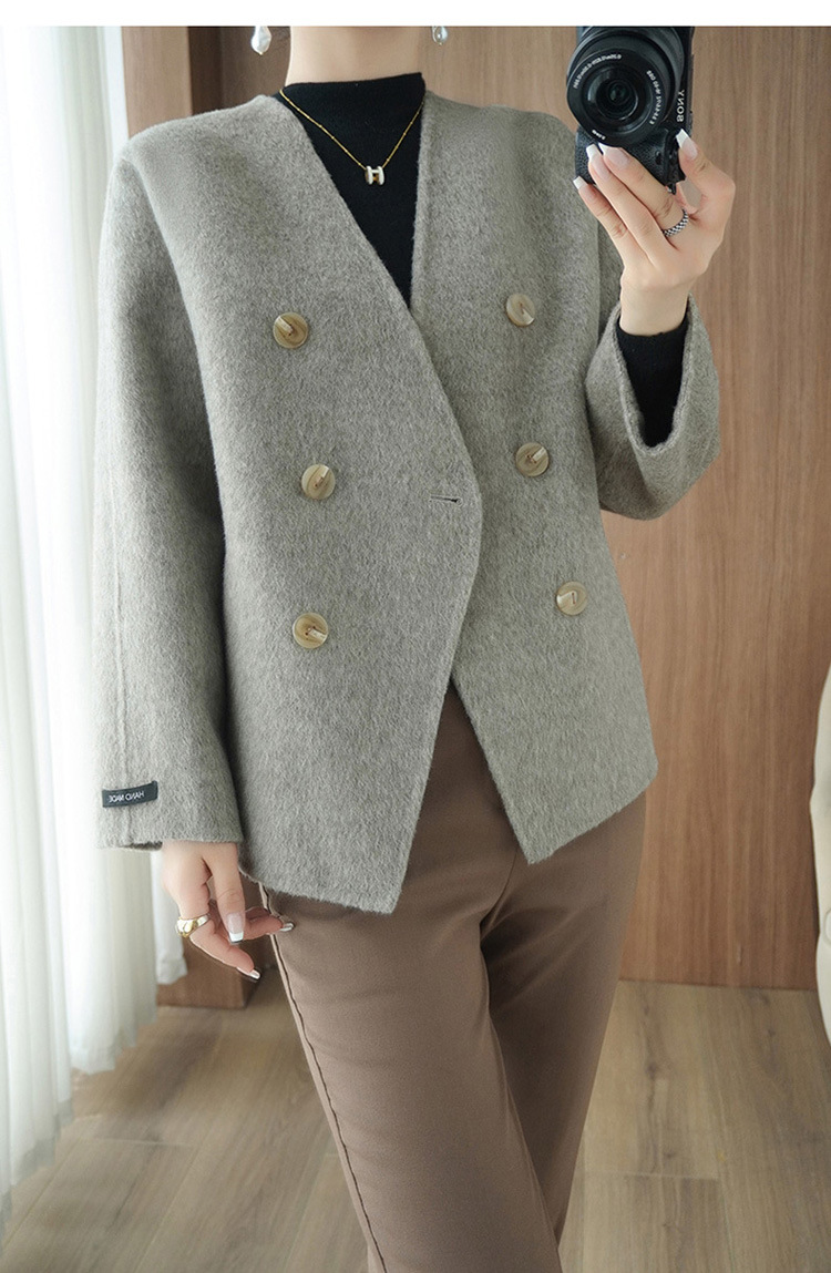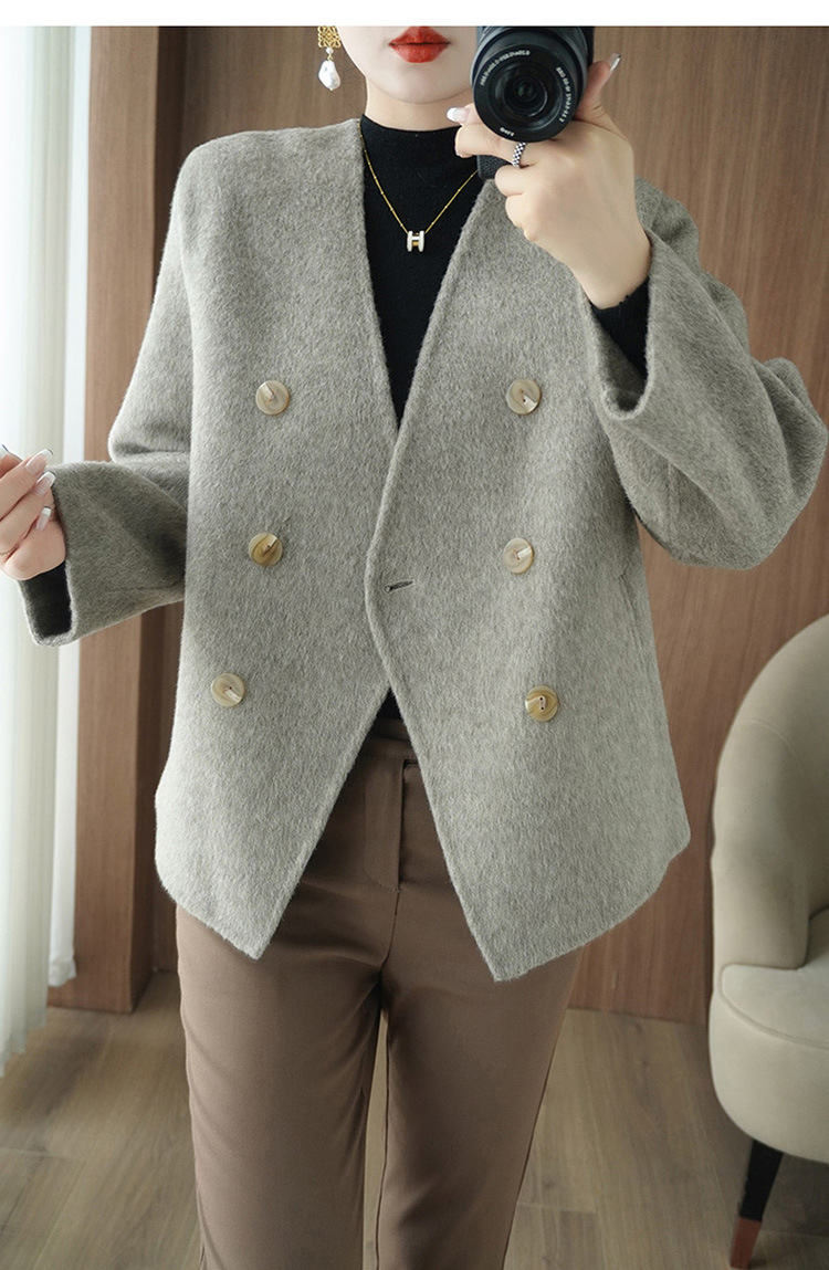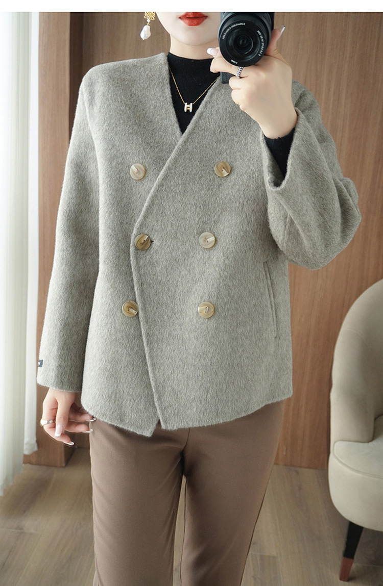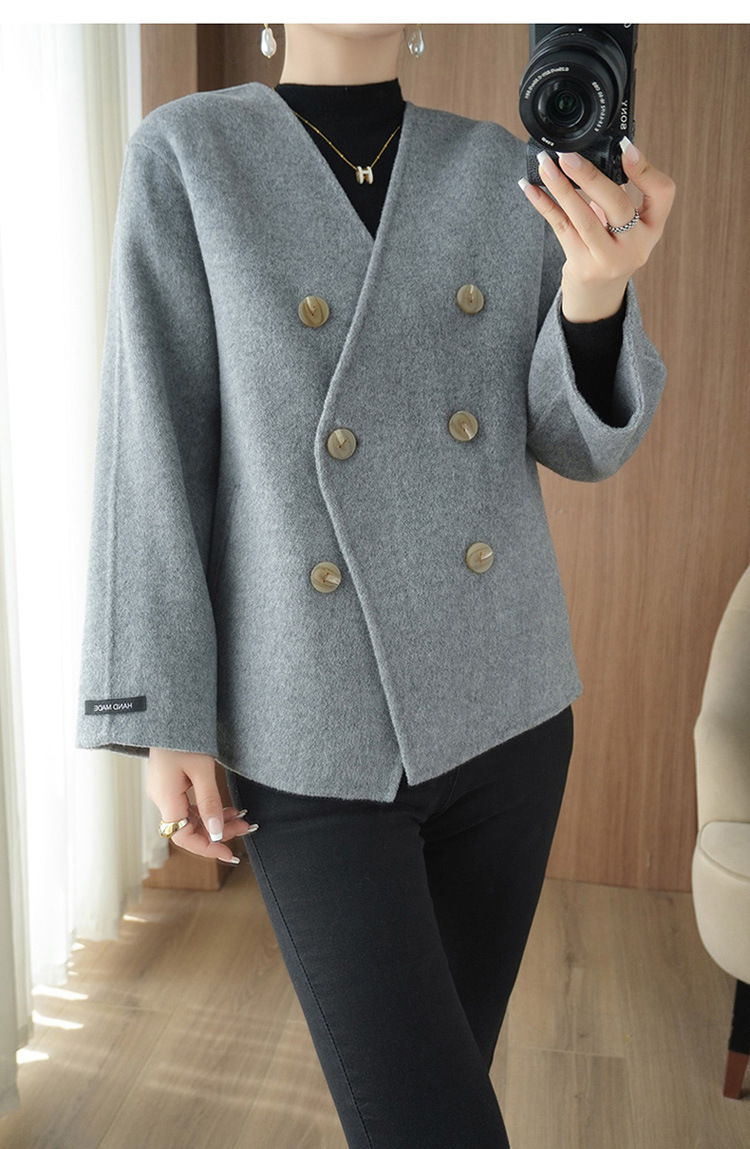24種類の小香風vネック両面ウールコート女性の短い気質英倫風ゆるい厚手のカシミヤコート