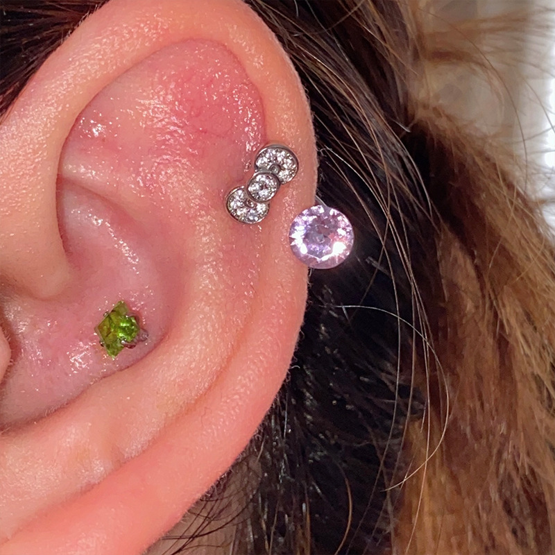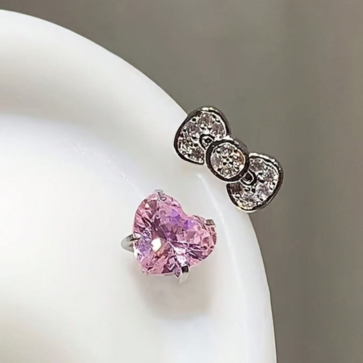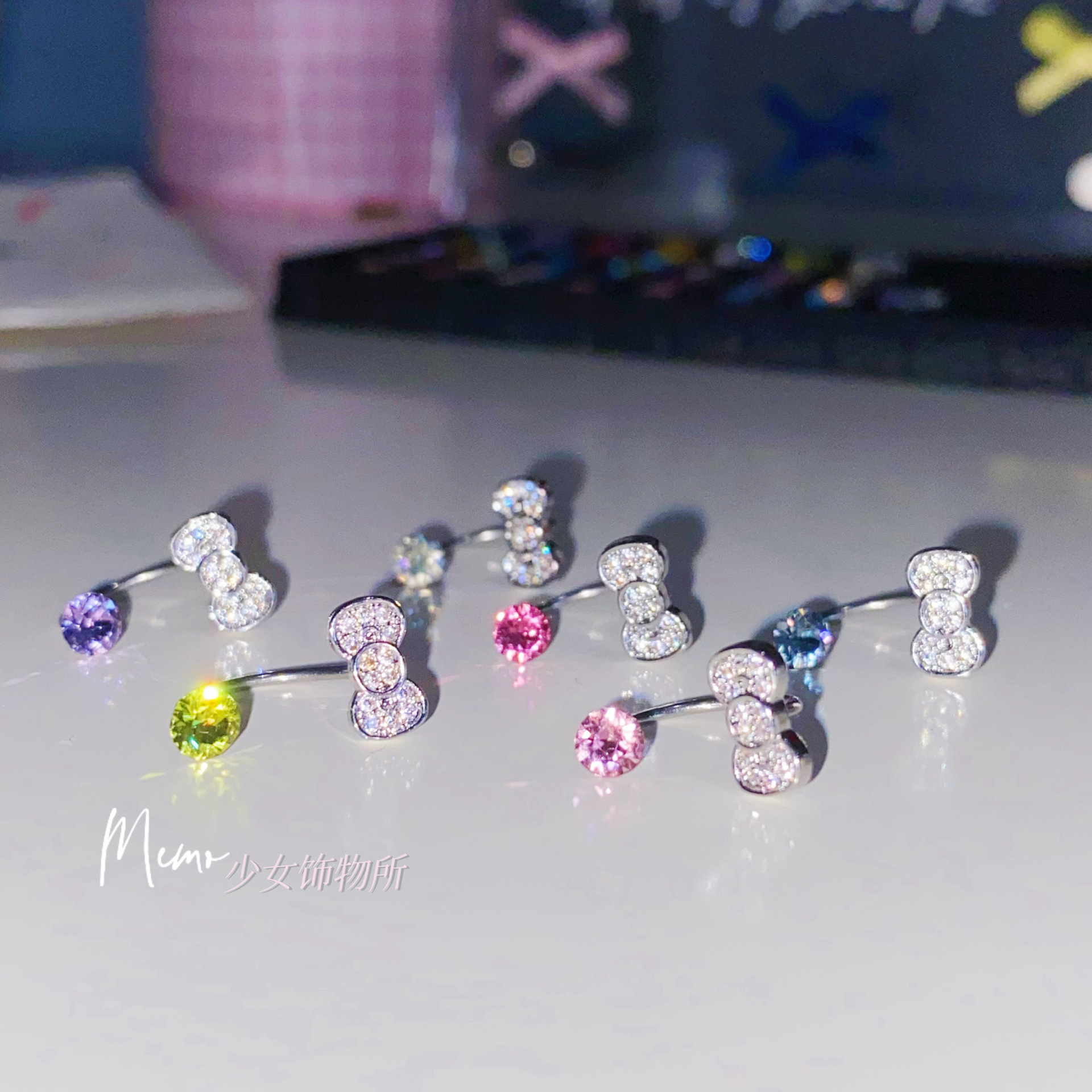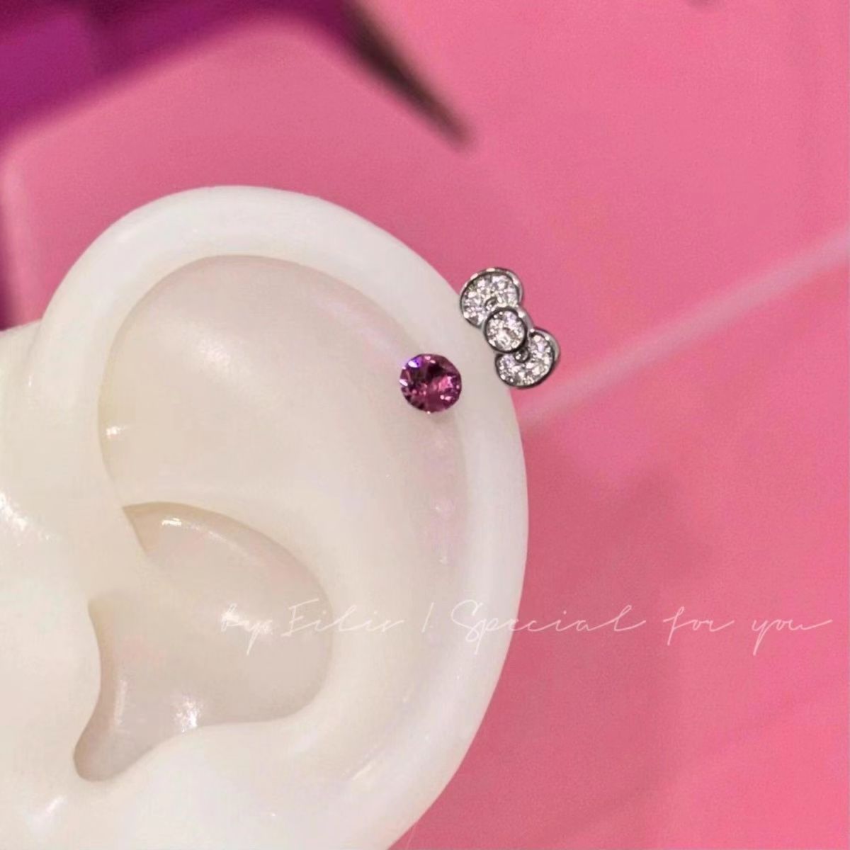 「ミニー姫」超キラキラ赤いジルコン蝶結びチタン鋼耳骨釘甘美で精緻な馬蹄環耳飾り女