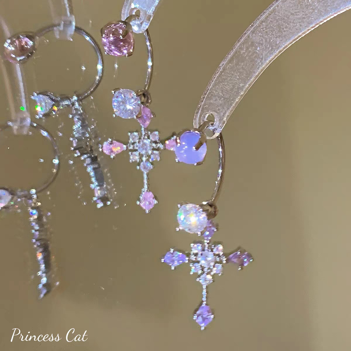 梦幻紫十字架马蹄环耳钉耳蜗钉耳骨钉耳饰
