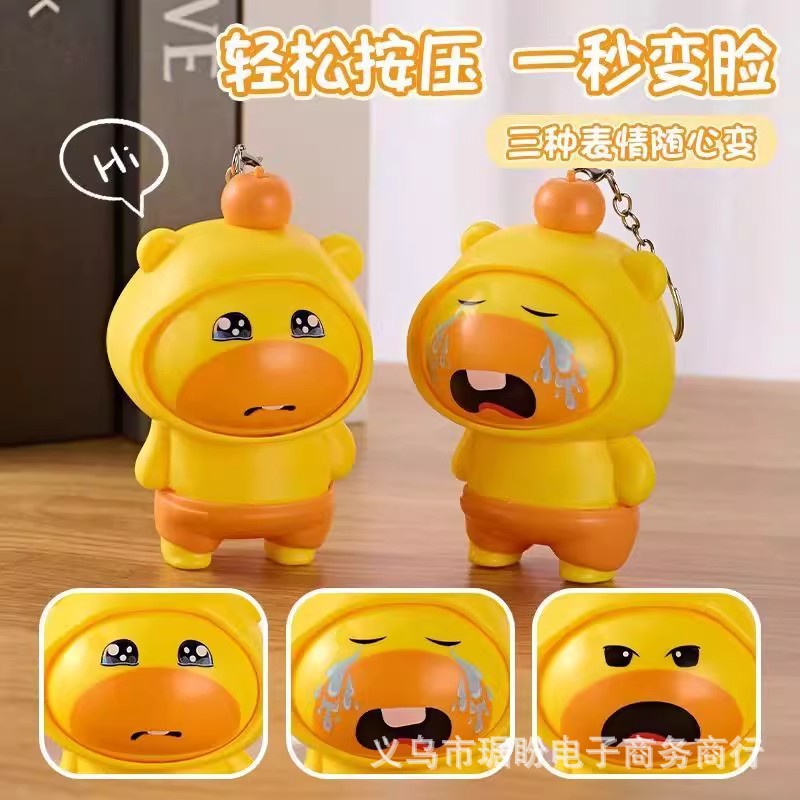 プレス回転顔変化カピバラおもちゃペンダント減圧 3 顔変化漫画カピバラ人形キーホルダー