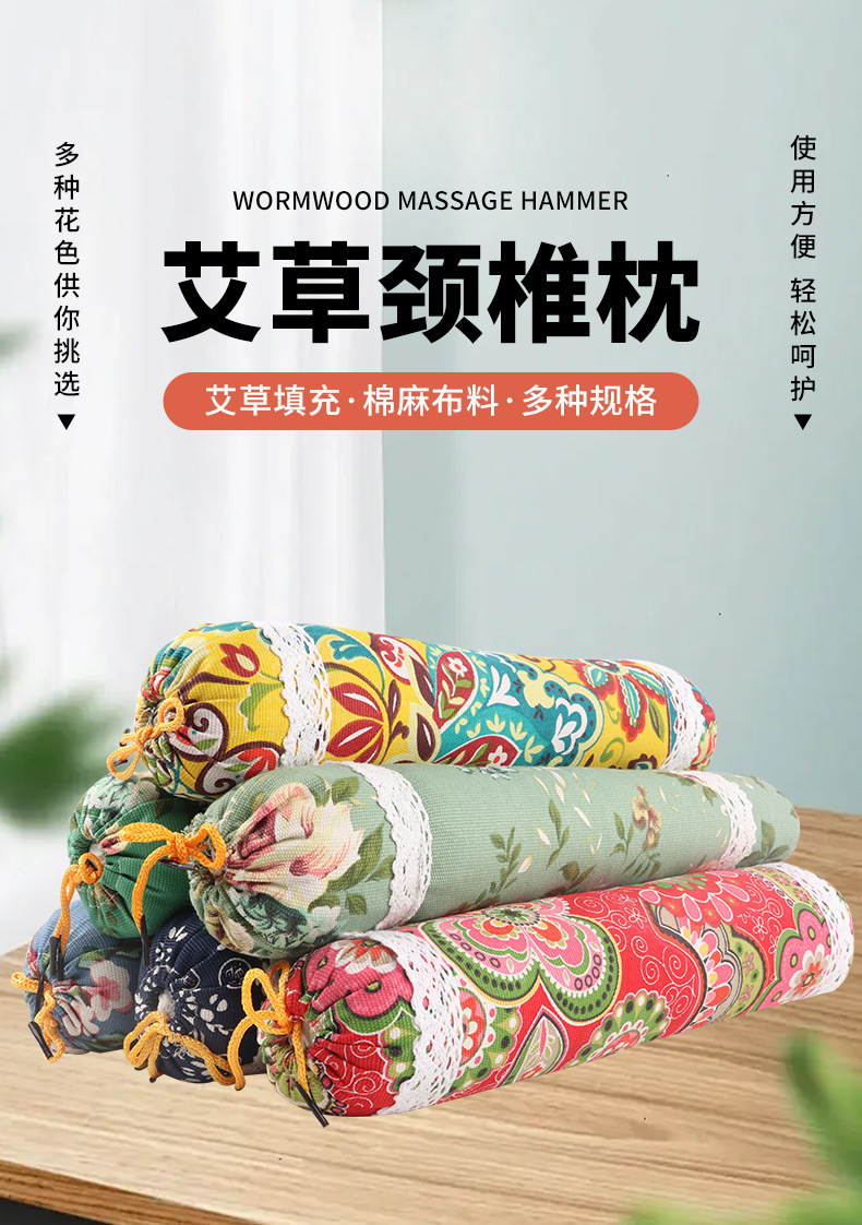 よもぎ枕、漢方薬枕、頸椎枕、睡眠補助、温湿布、灸骨枕、多機能ヘルスケア、取り外し可能なネックピロー