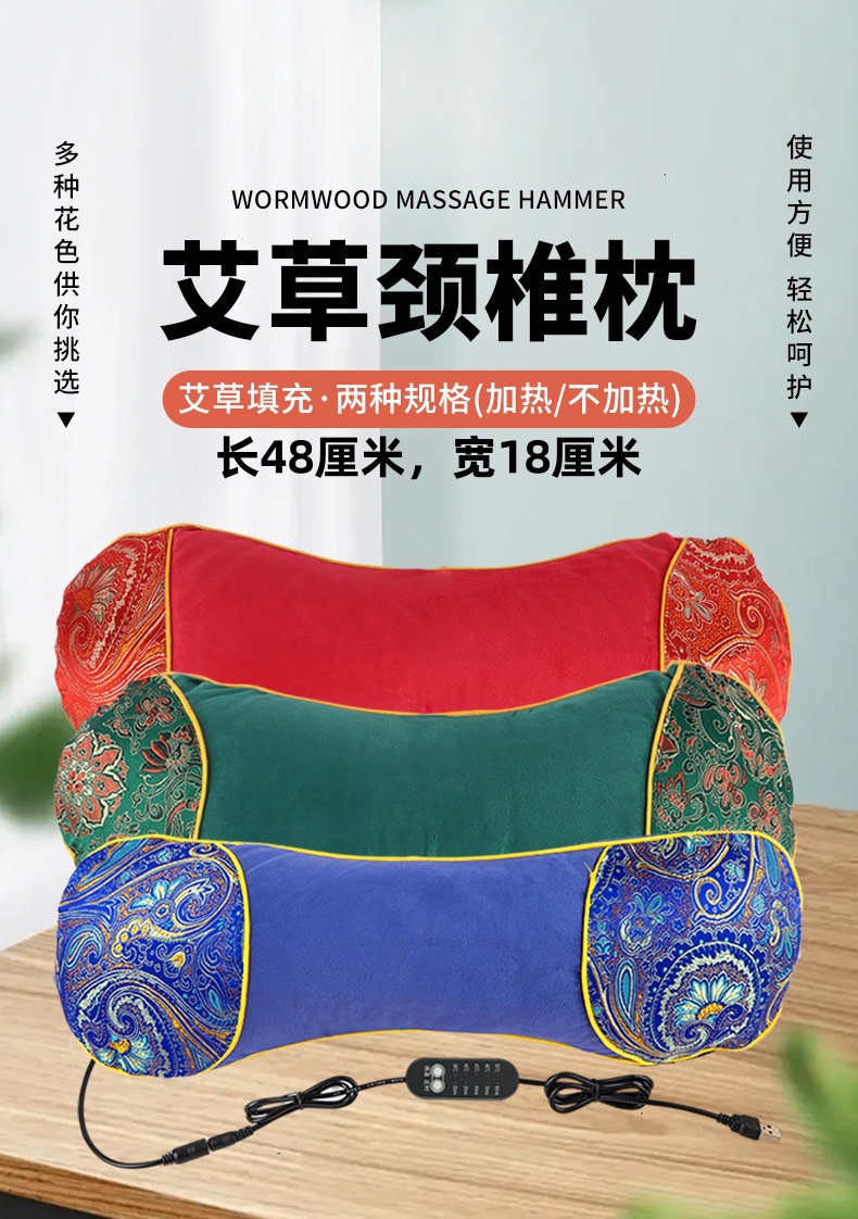 よもぎ頸椎枕家庭用取り外し可能なワンピース頸椎枕健康よもぎ枕睡眠補助ネックピロー卸売,電気加熱骨枕家庭用取り外し可能な睡眠補助灸枕温湿布健康枕純粋なよもぎ頸椎保護枕