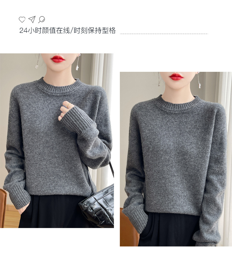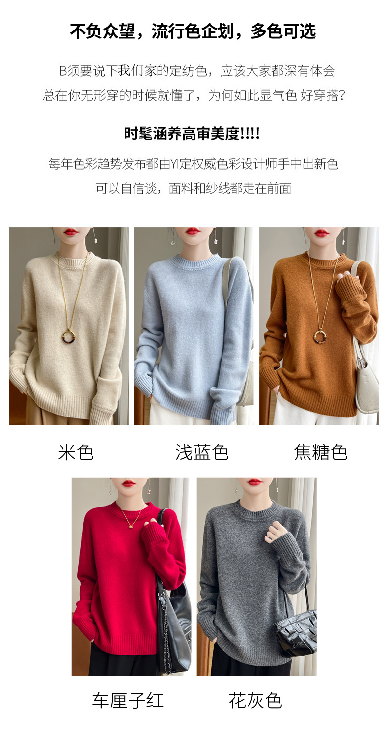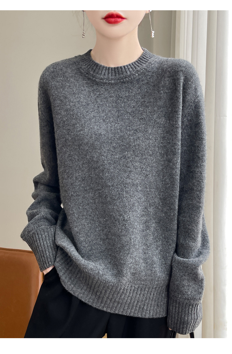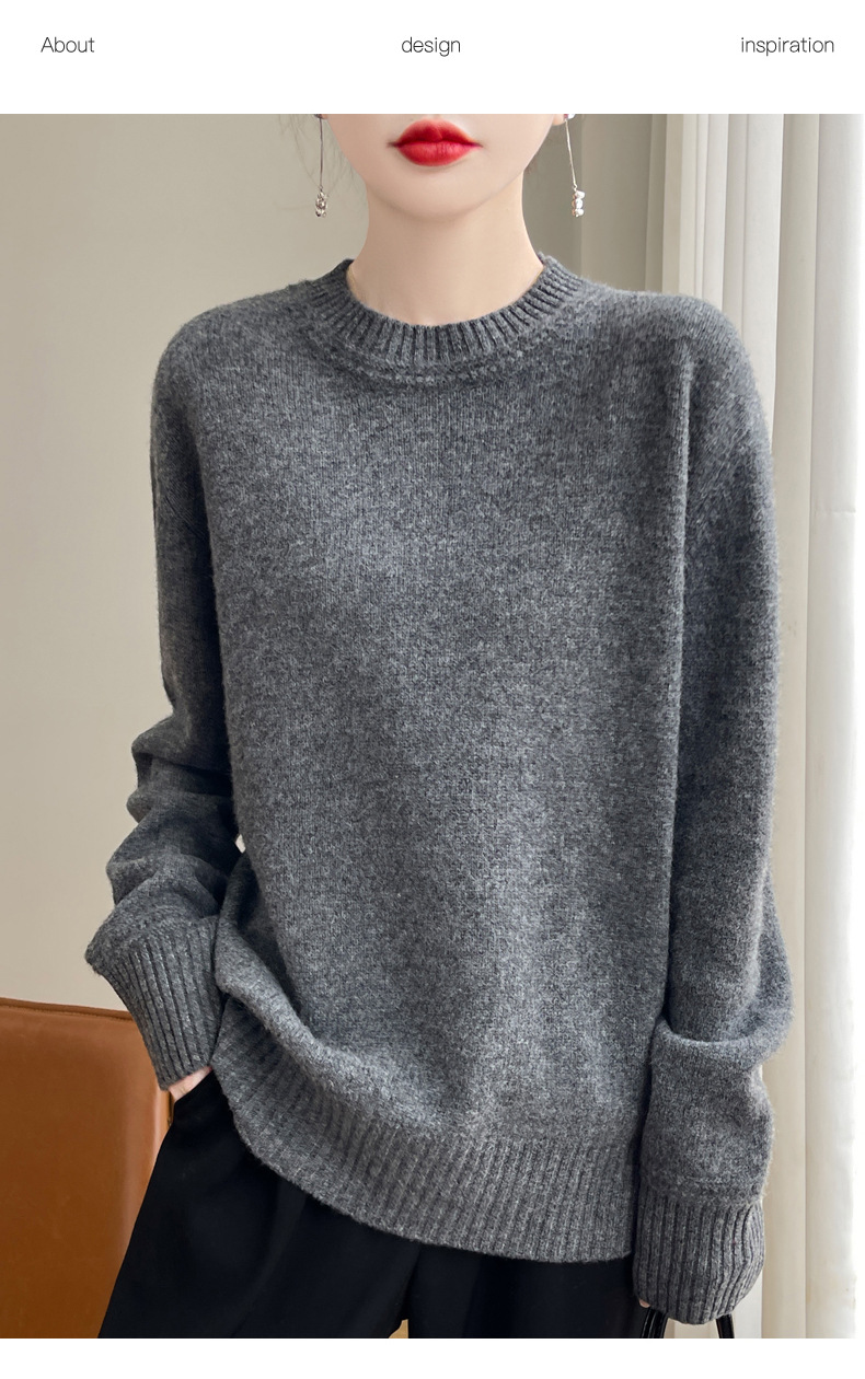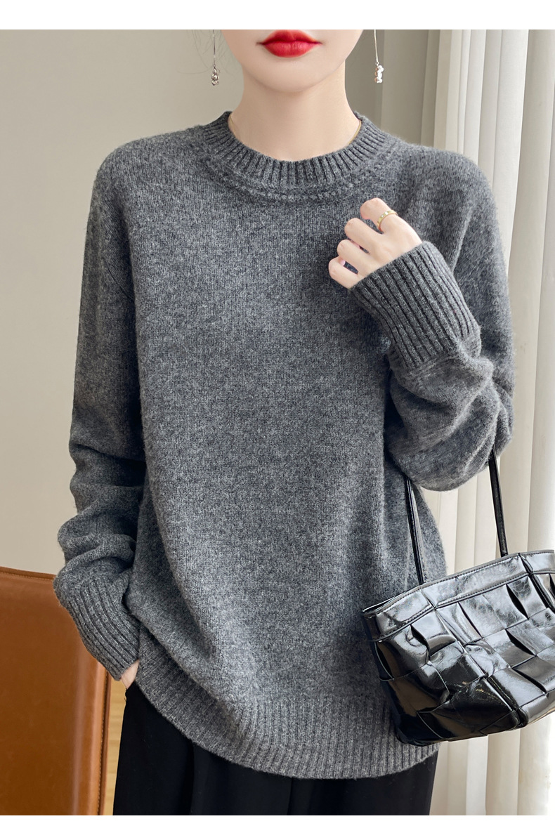 24年秋冬丸首の厚い純色のウールのセーターの女性の韓国版のゆったりしているセーターのニットの気質の百合の底のシャツ