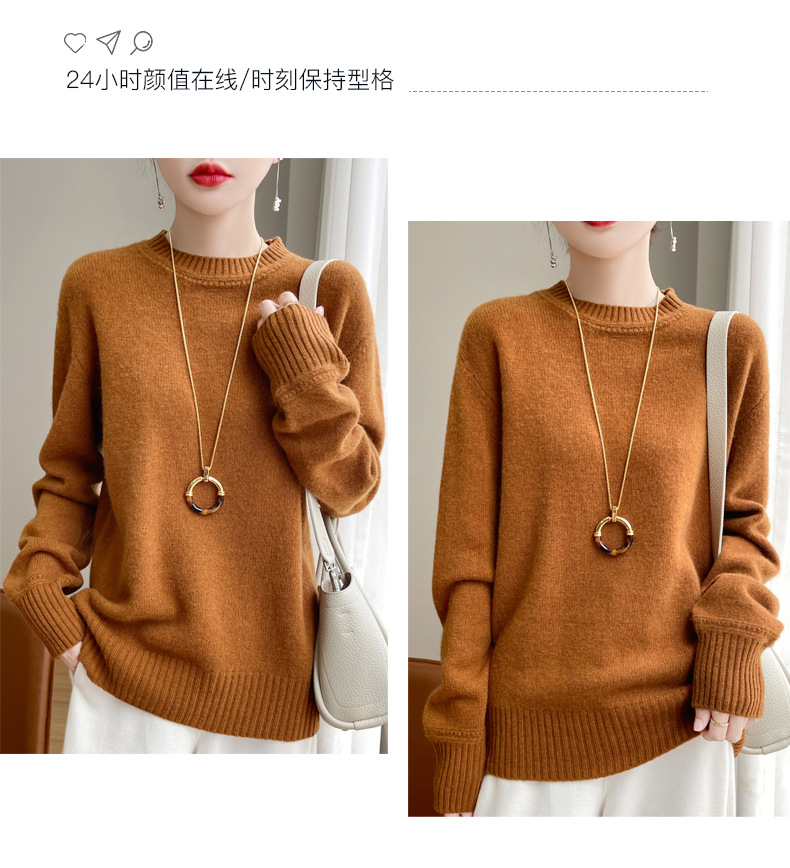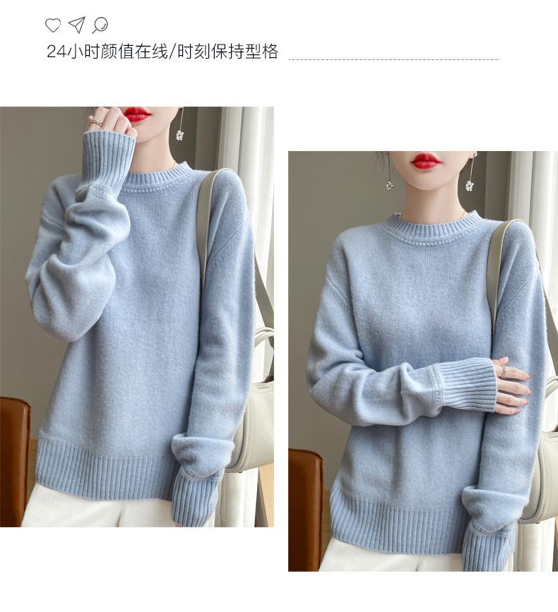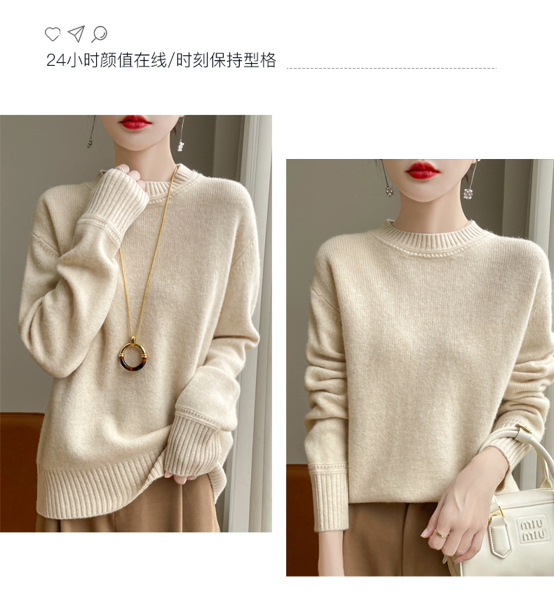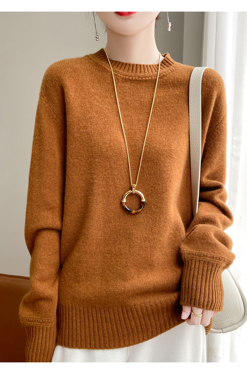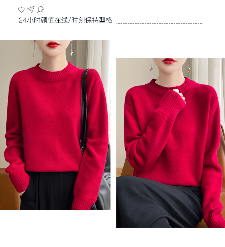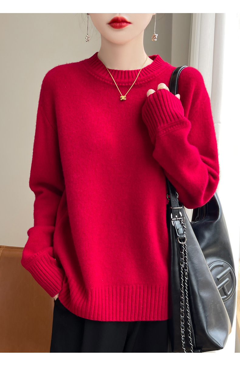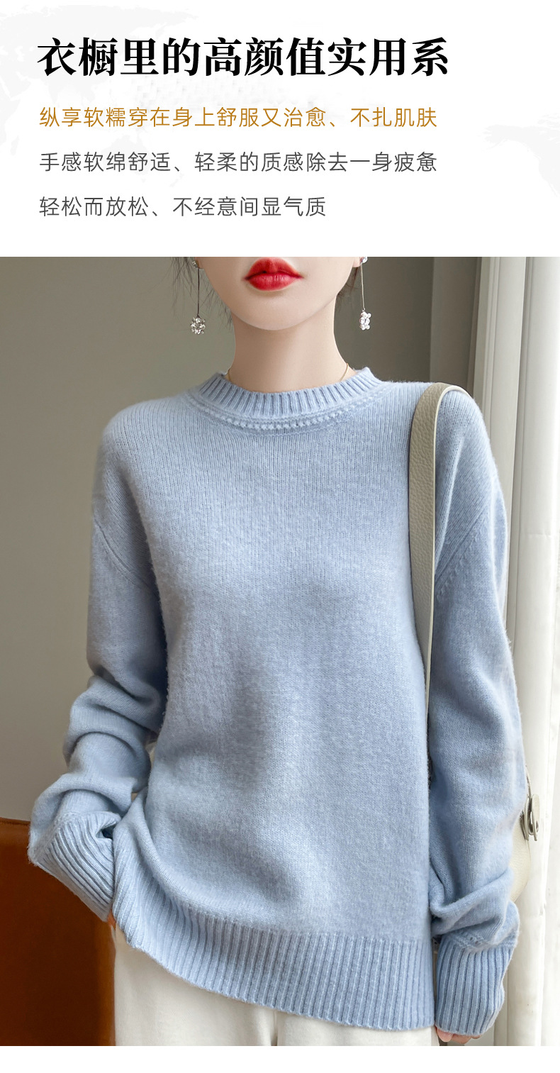 24年秋冬丸首の厚い純色のウールのセーターの女性の韓国版のゆったりしているセーターのニットの気質の百合の底のシャツ