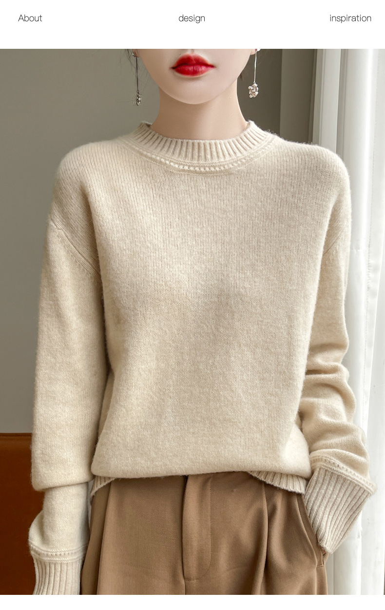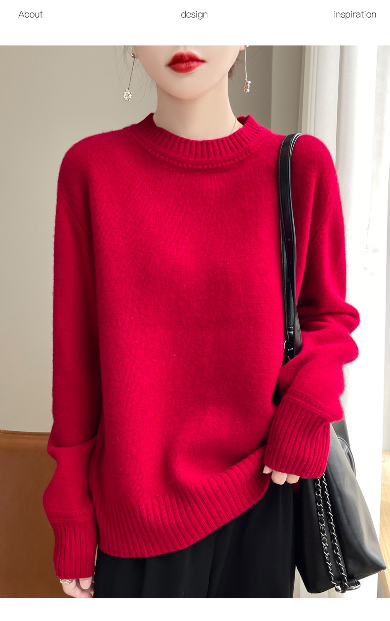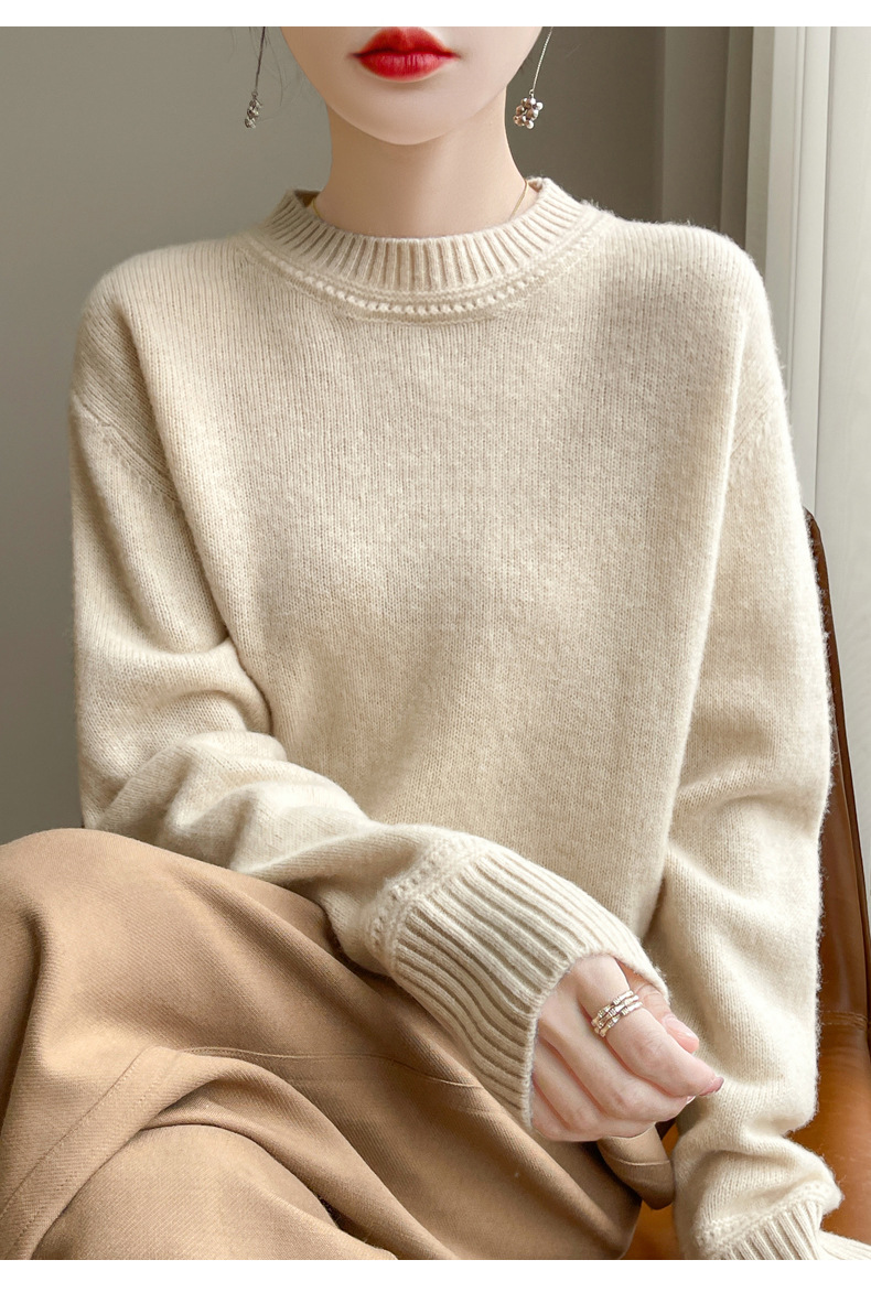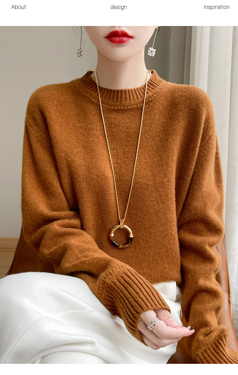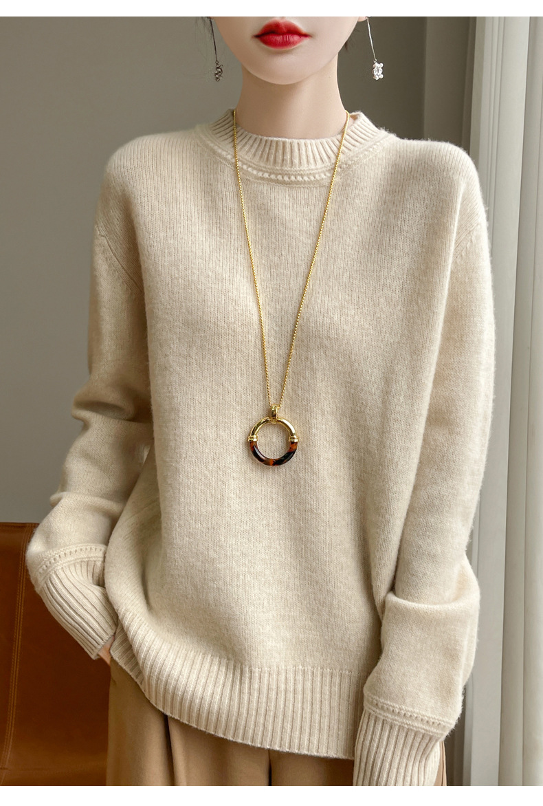 24年秋冬丸首の厚い純色のウールのセーターの女性の韓国版のゆったりしているセーターのニットの気質の百合の底のシャツ