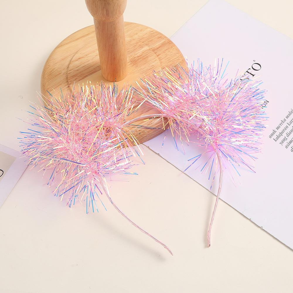 カラフルな光る雨糸の毛玉スプリングヘアバンド、子供の誕生日パーティーの装飾用ヘッドバンド、クリスマスレーザーヘアアクセサリー