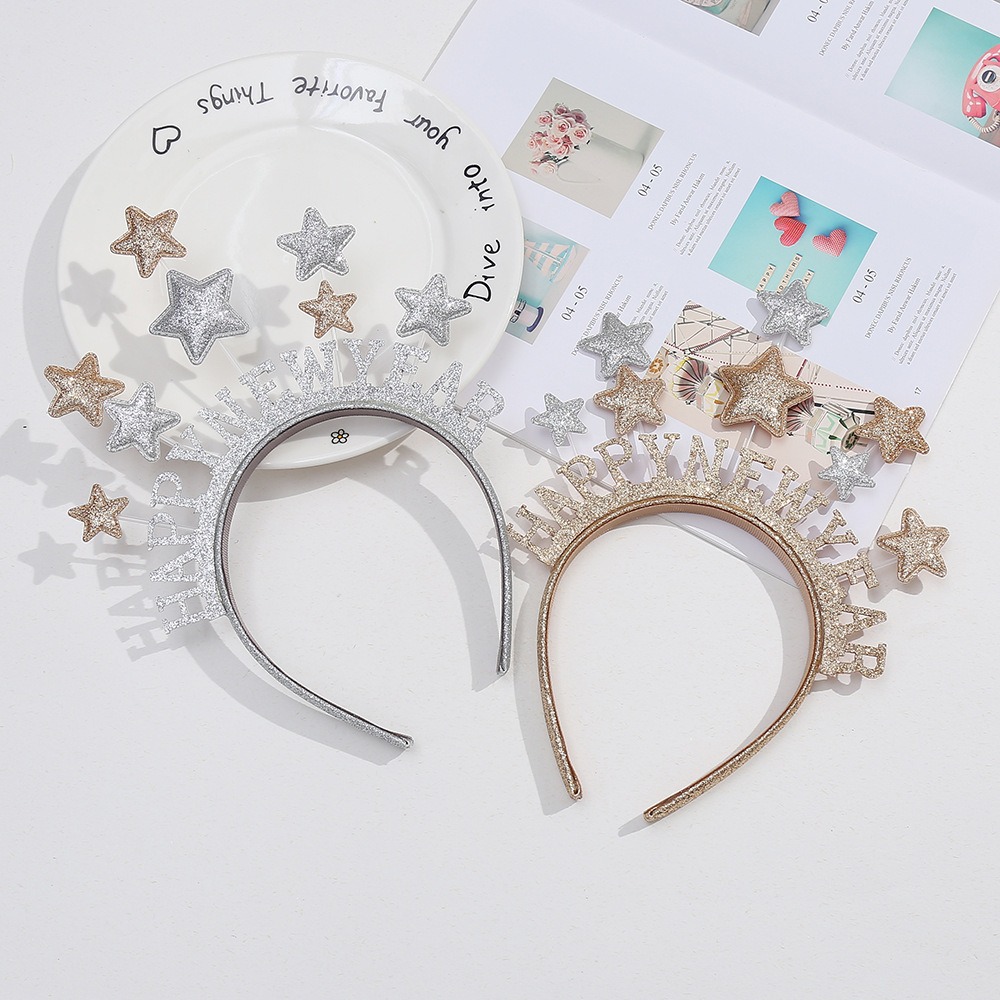 子供用スパンコール五芒星ヘアバンド クリスマス誕生日パーティー仮装ヘッドバンド 新年パーティー文字装飾小道具