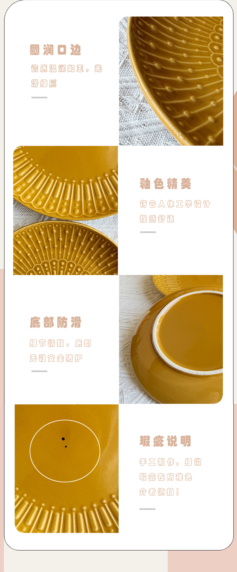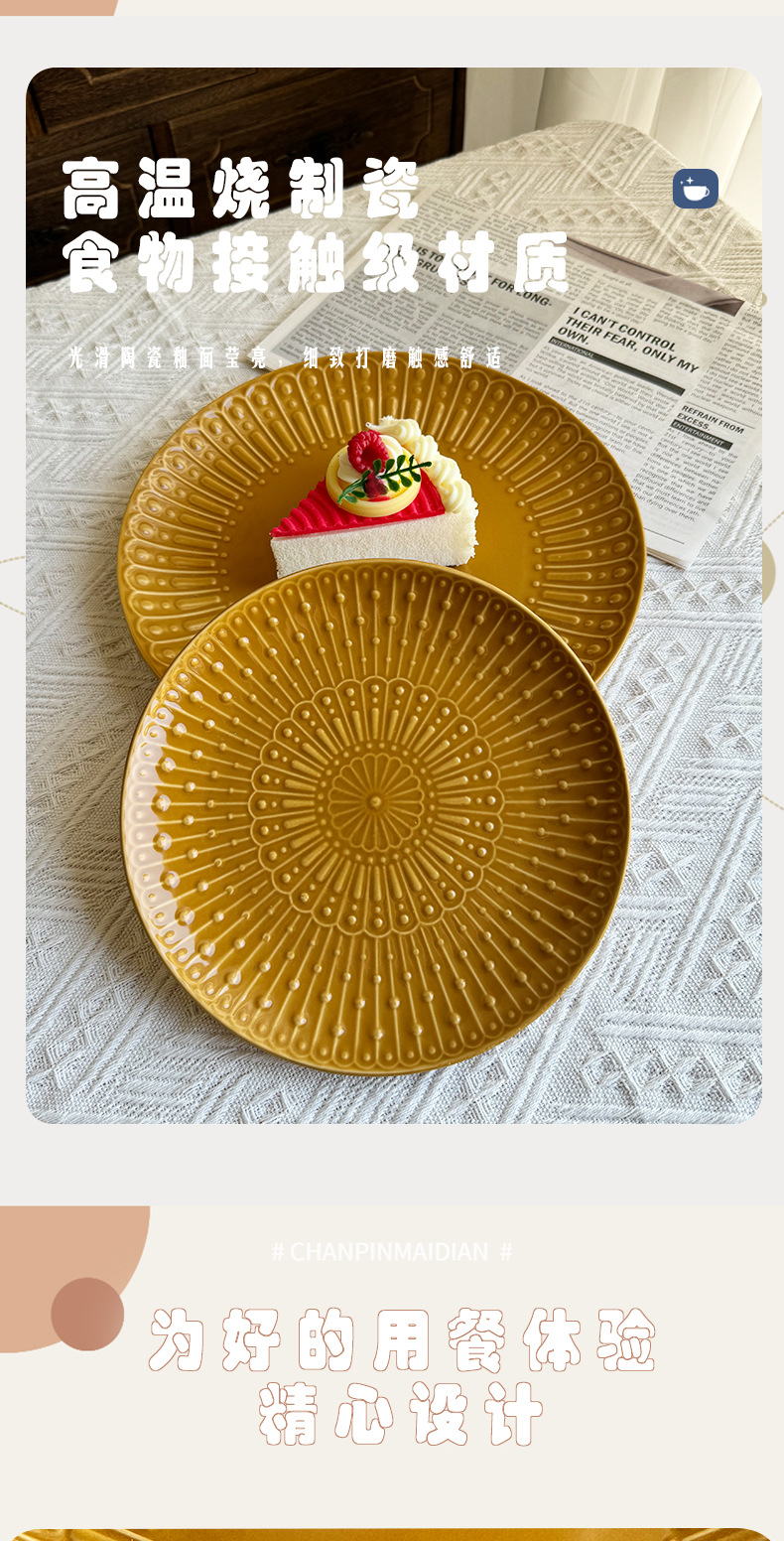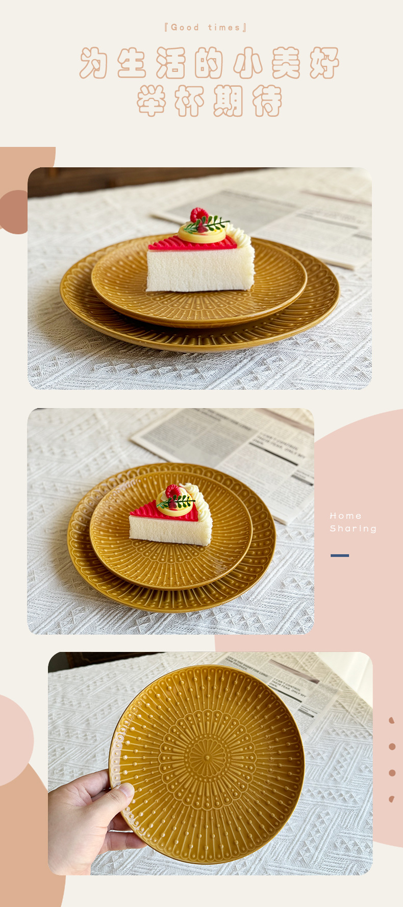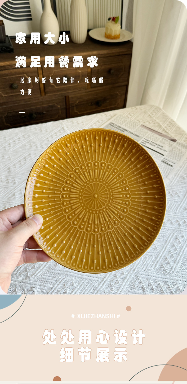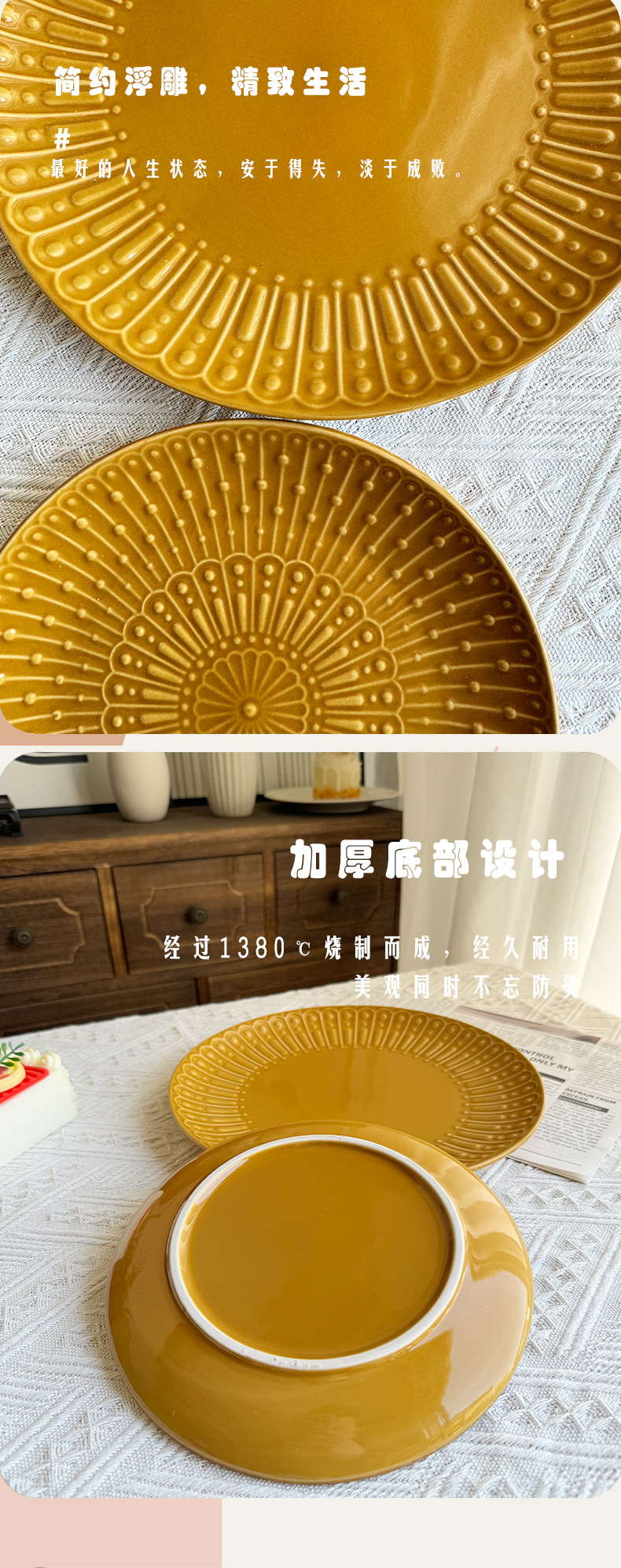 シンプルなレリーフ8インチ皿家庭用料理皿10インチ菓子皿耐高温サラダボウルレトロなセラミック食器