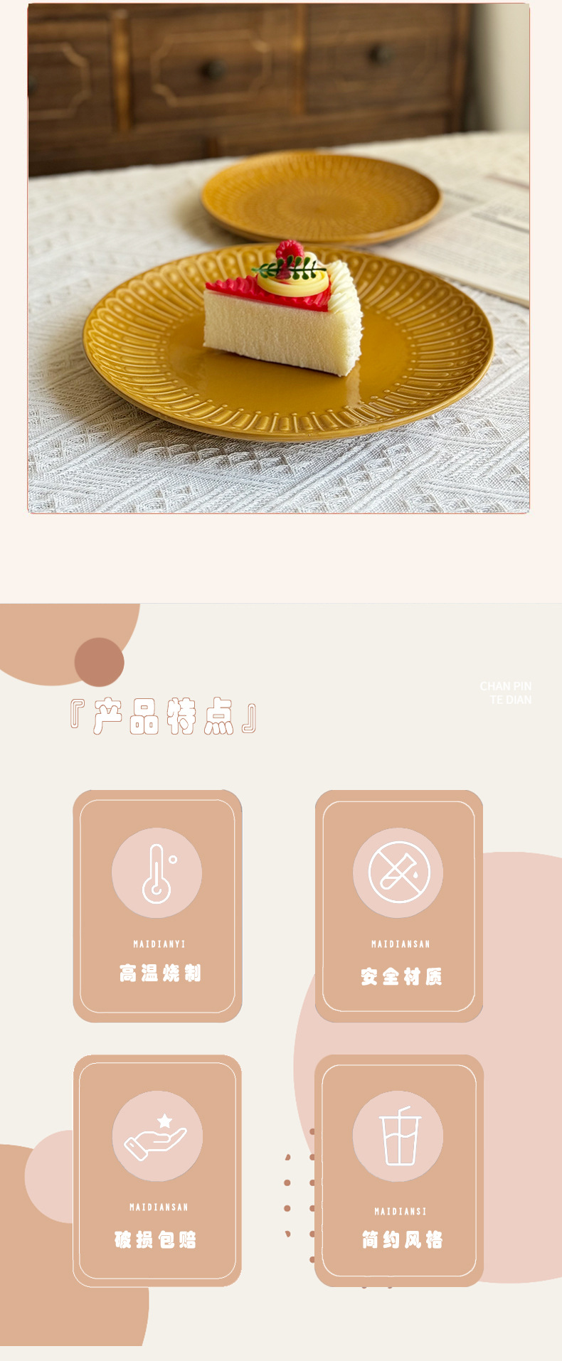 墨かけ陶磁器皿洋食韓国insステーキ皿レトロ小衆レストランケーキデザート皿家庭料理皿