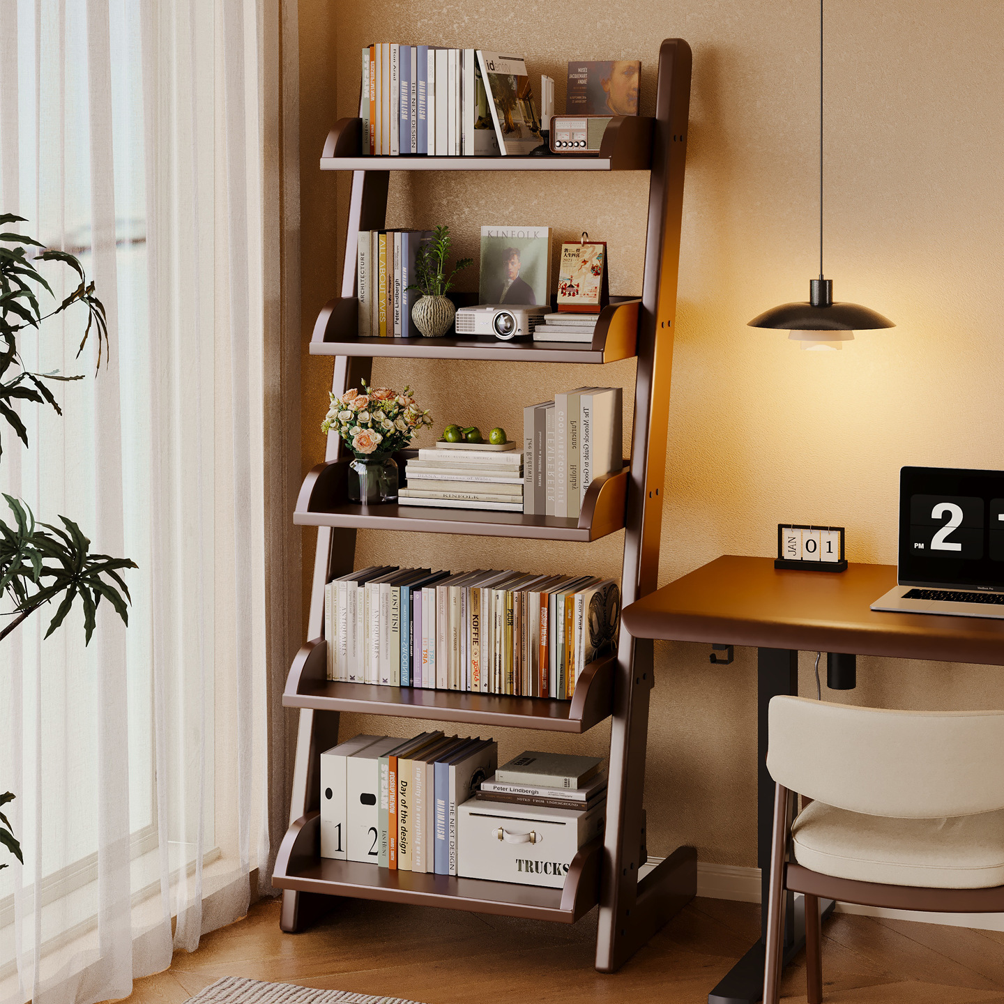 实木书架落地置物架一体靠墙家用整理收纳架子书房阶梯式儿童书柜