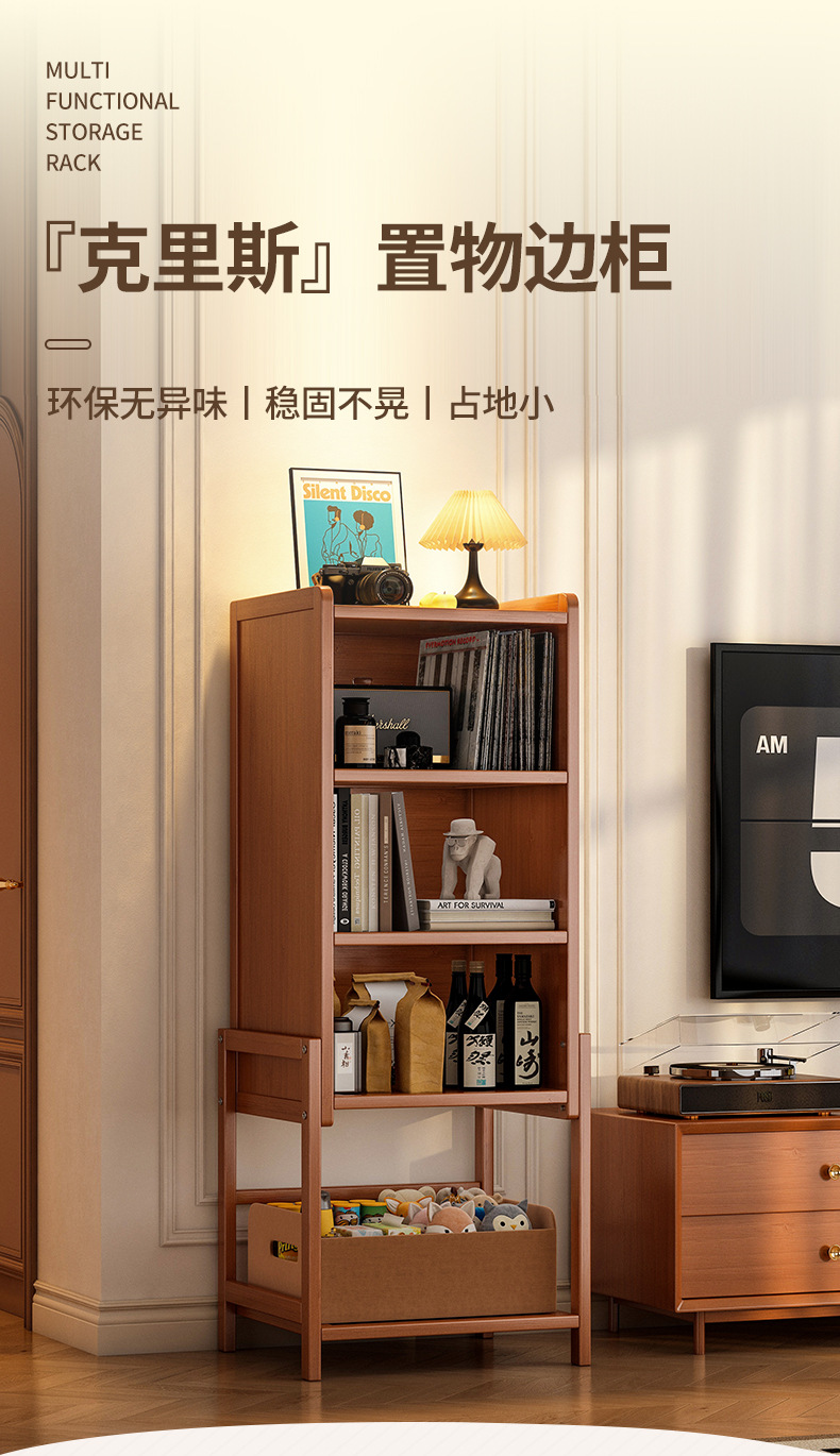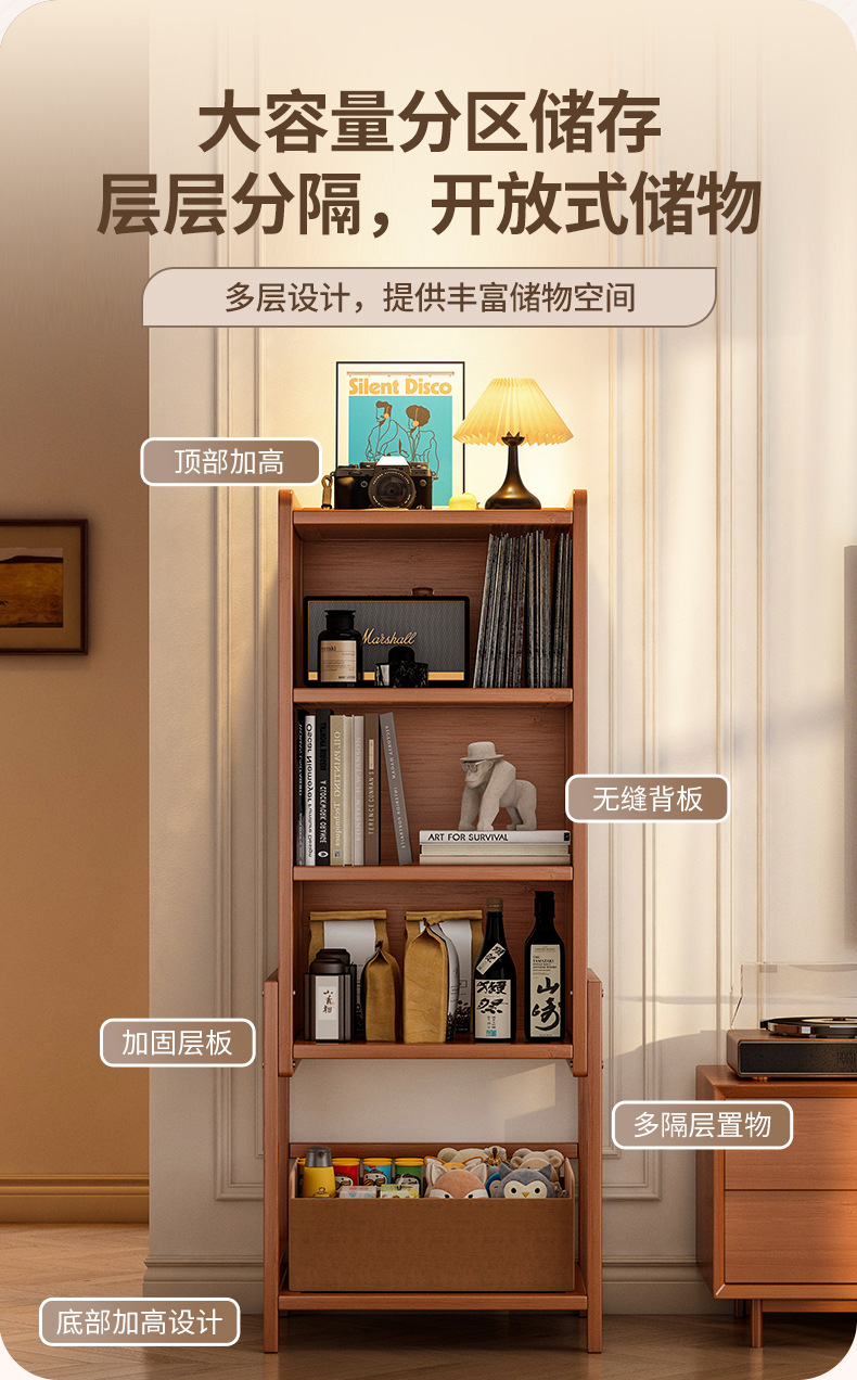 书架落地置物架一体靠墙窄柜子简易储物柜家用客厅书柜收纳展示架