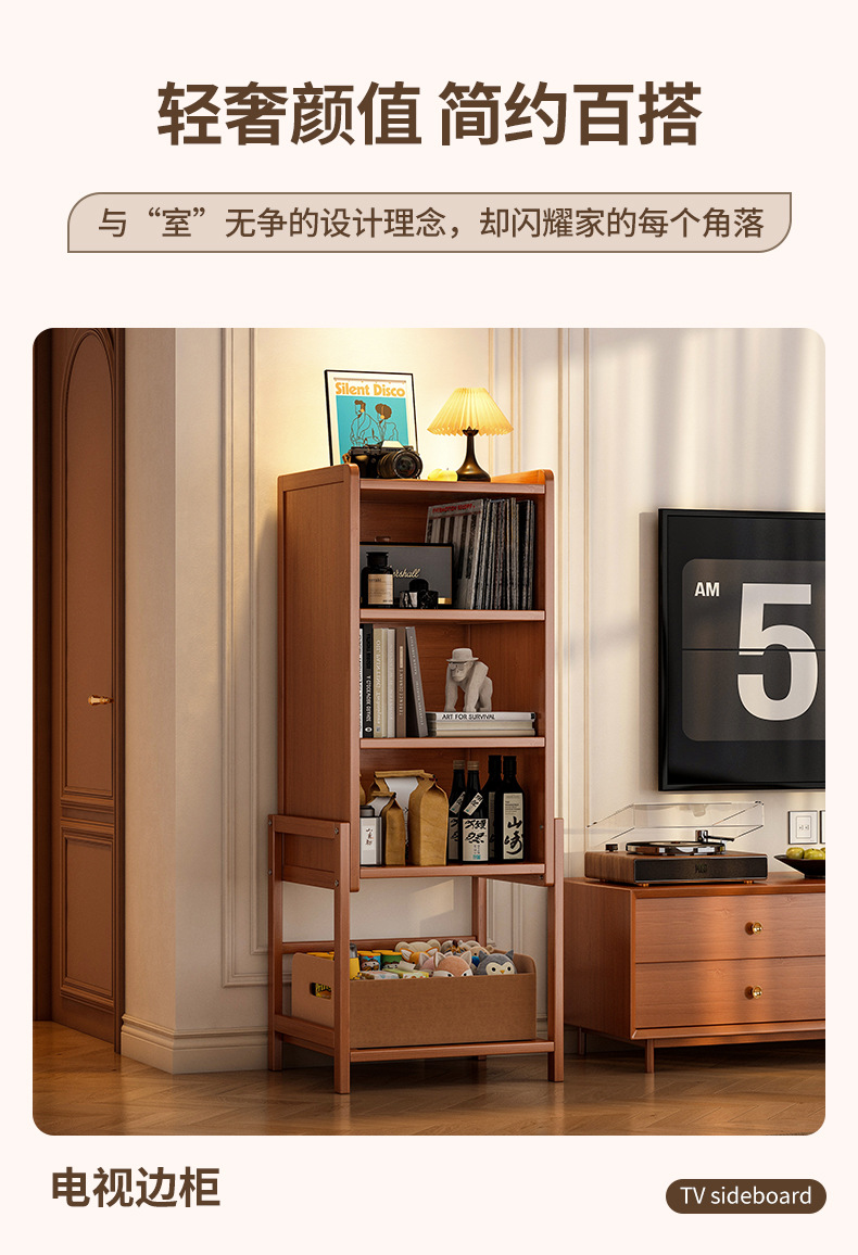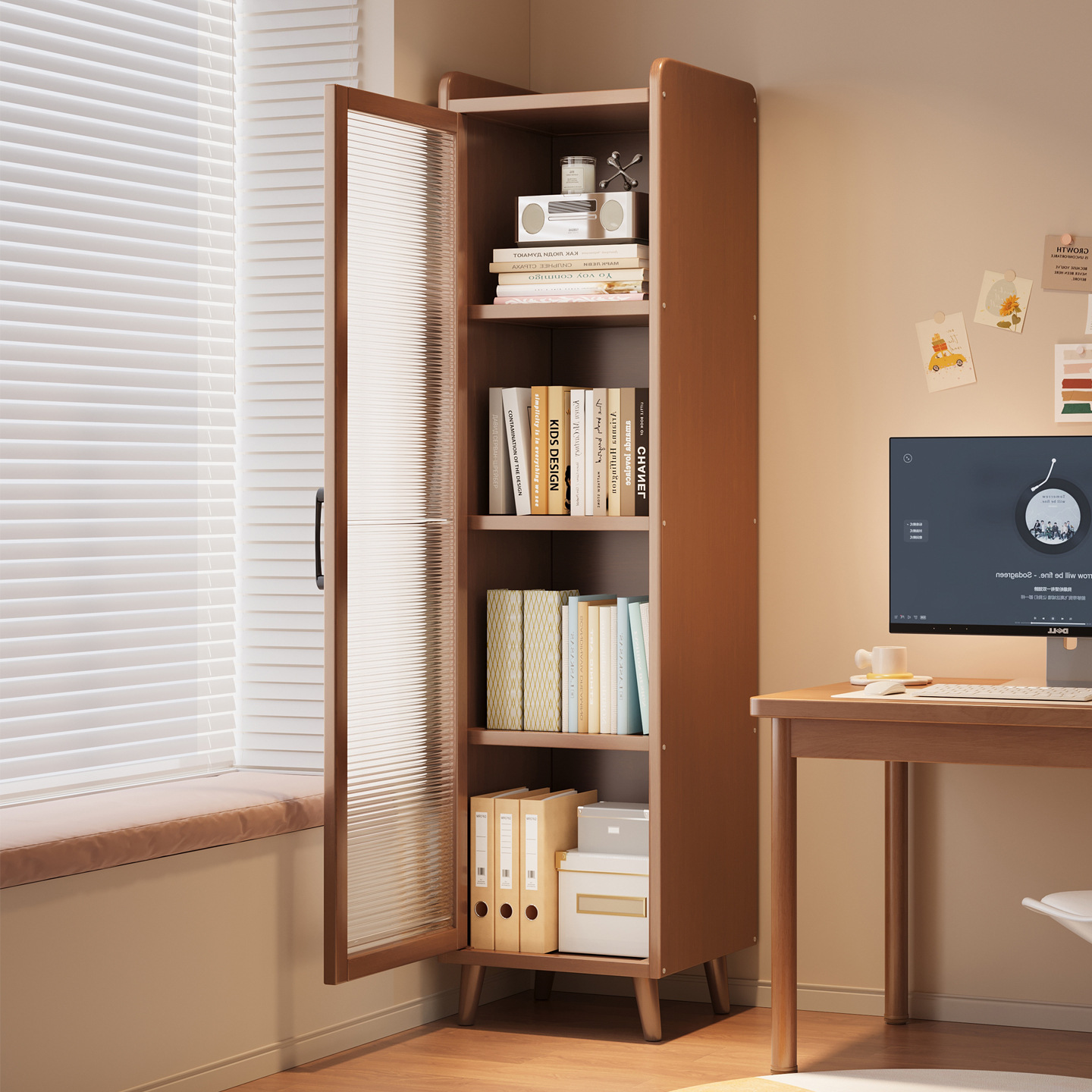 书柜带门置物架多层收纳夹缝储物柜客厅展示柜子书架靠墙电视边柜