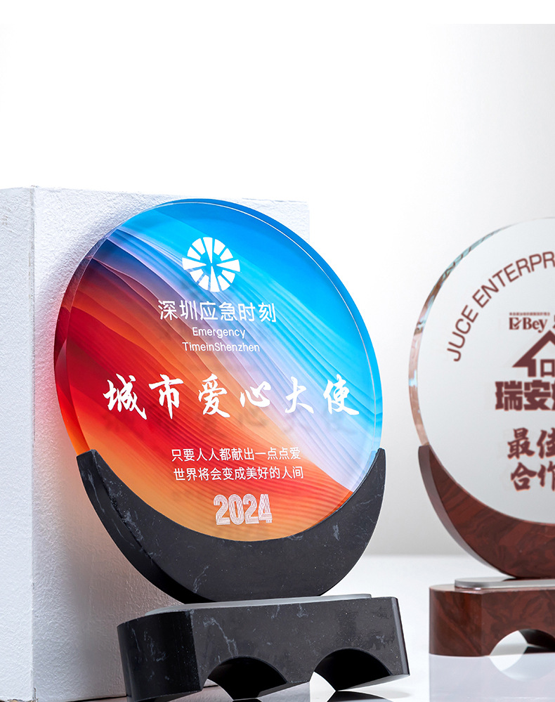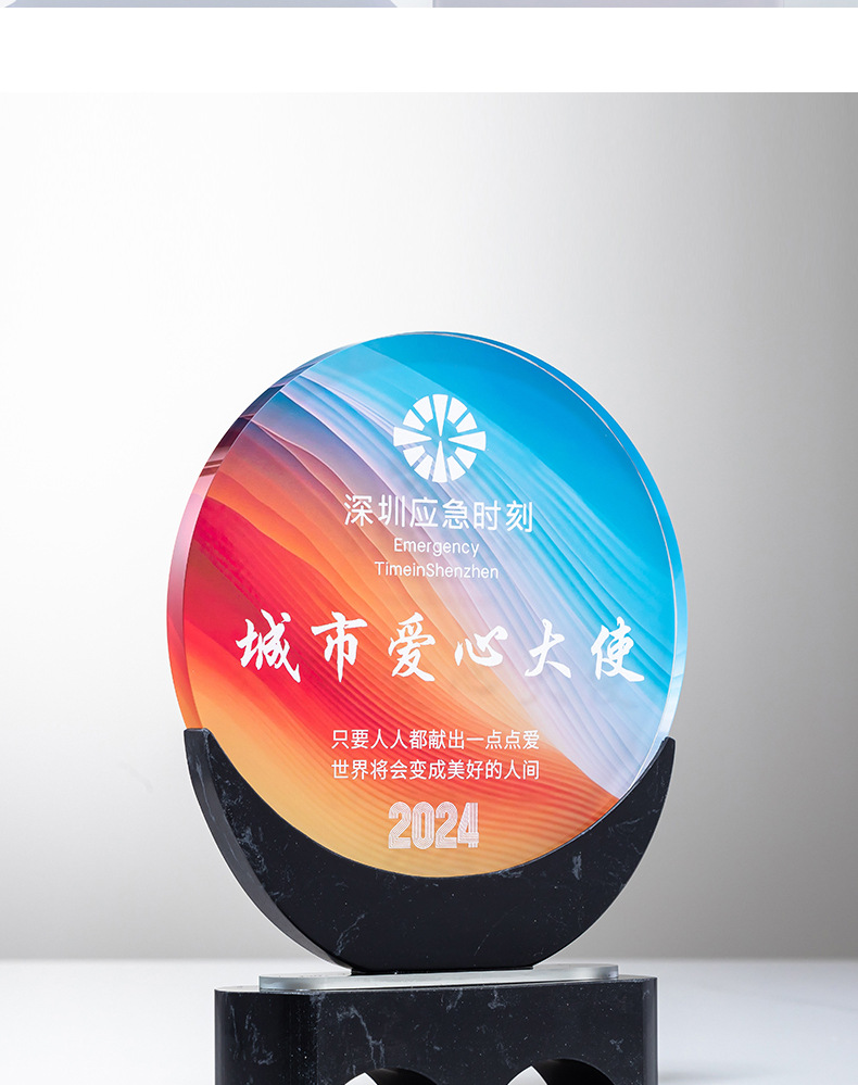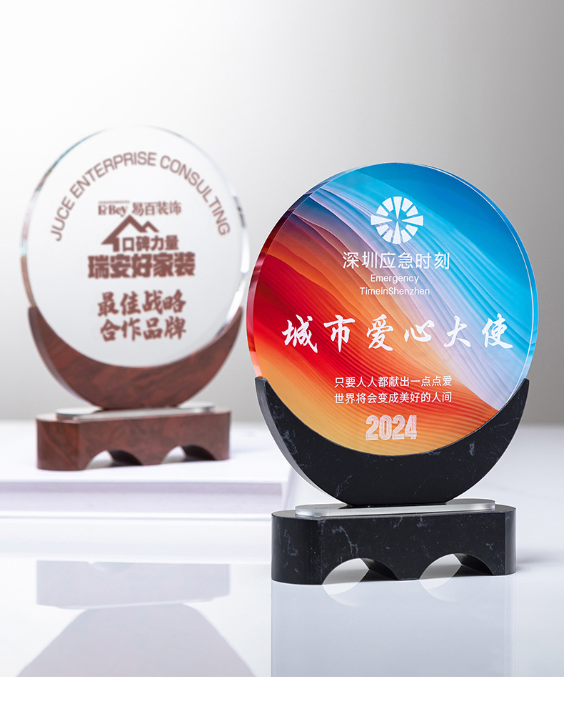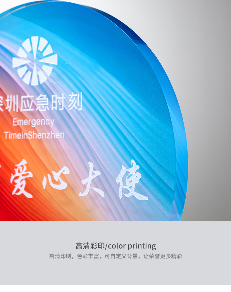 クリエイティブクリスタルトロフィーカスタムカラープリント写真斜面屏風クリエイティブ彫刻制作会社優秀社員メダル