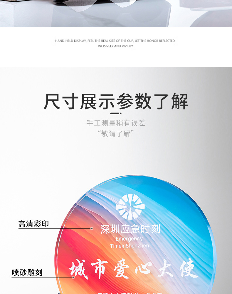 クリスタルトロフィー創意ガラス刃メダル制作レタリングコミュニティボランティア抗疫病記念品表彰トロフィー