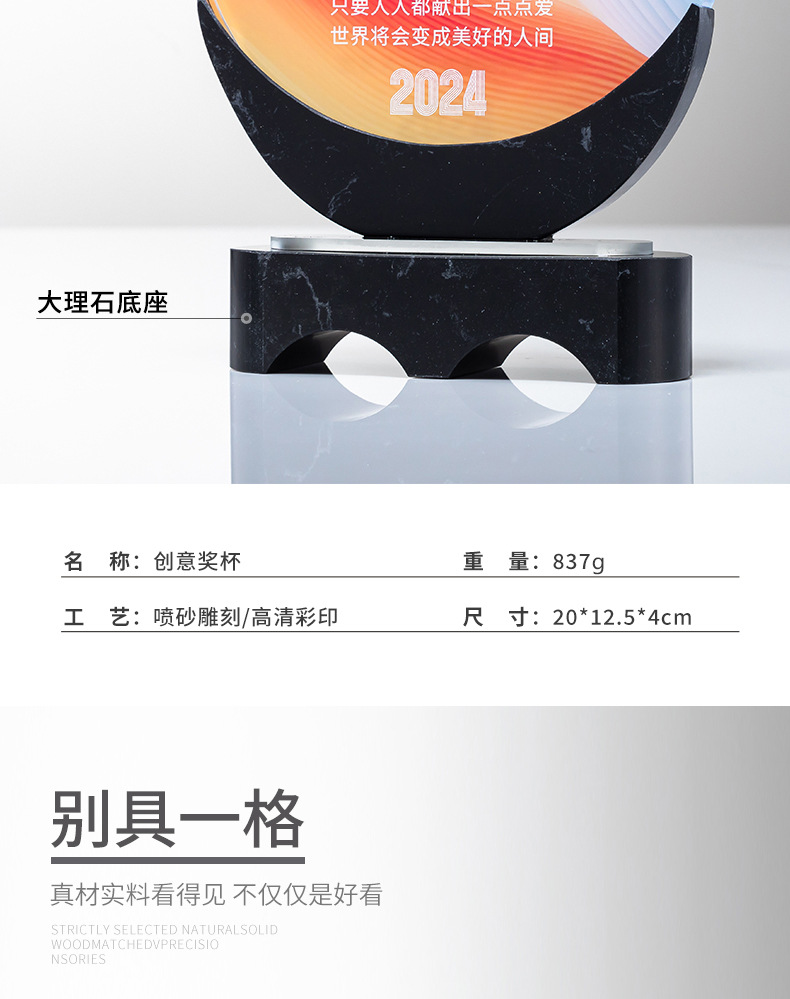 新商品創意三日月大理石水晶トロフィー優秀社員栄誉授権メダル授賞販売チーム