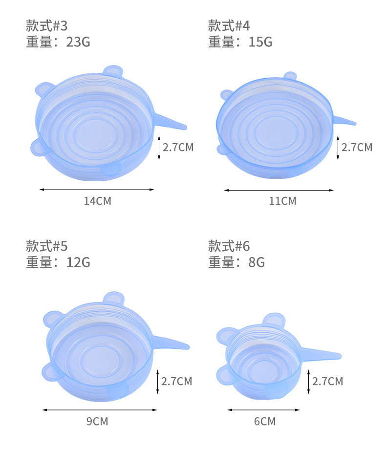 シリコンラップ蓋6点セット多機能密封蓋冷蔵庫電子レンジ密封蓋