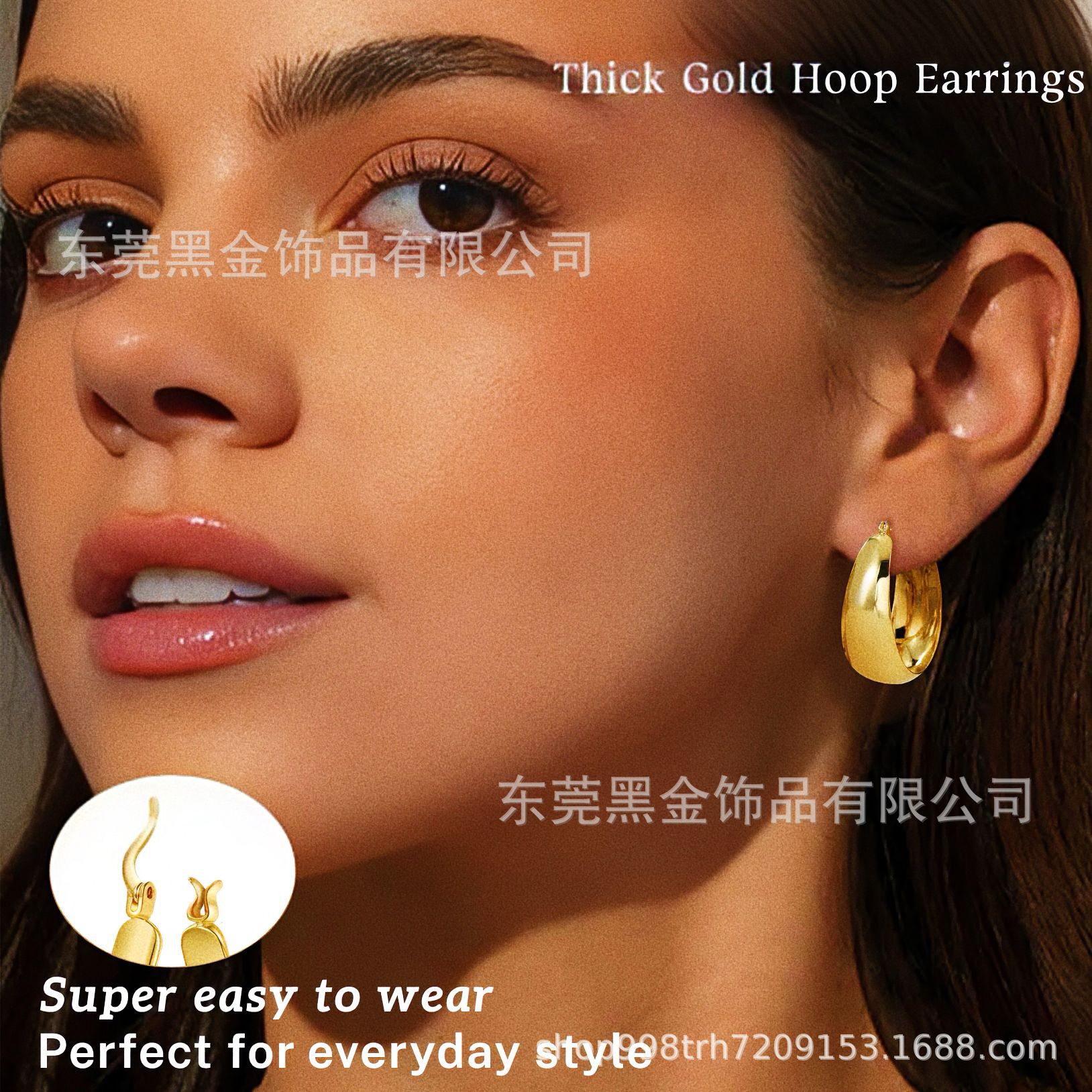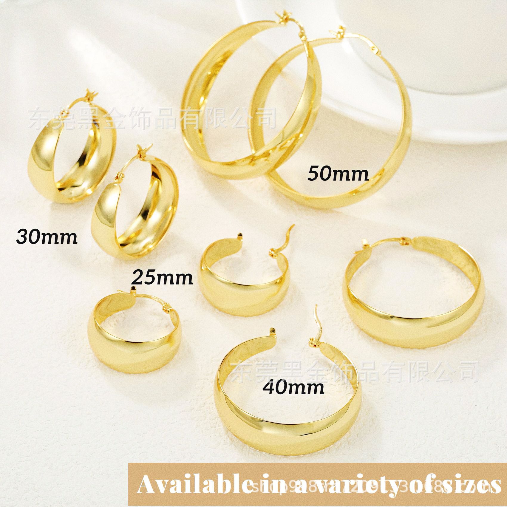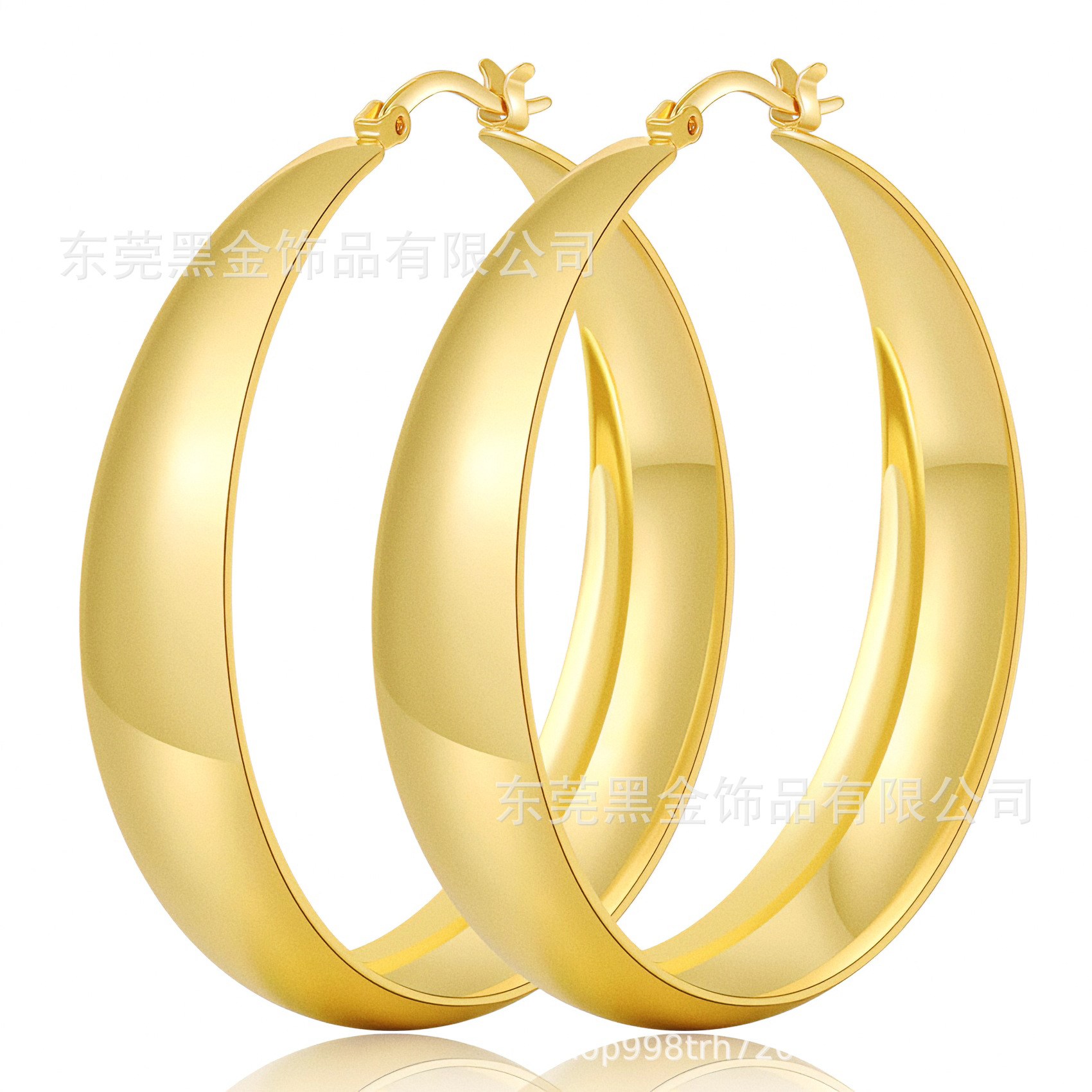 欧美跨境黄铜18k金宽面弧形耳环C形圆圈耳扣薄片质感简约耳饰品