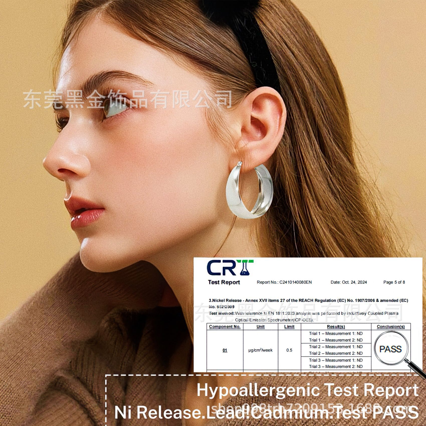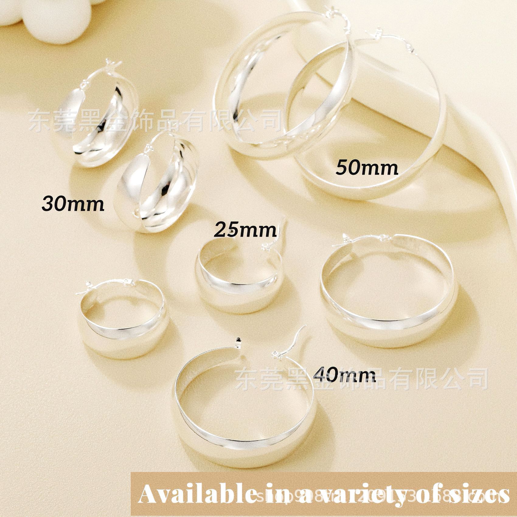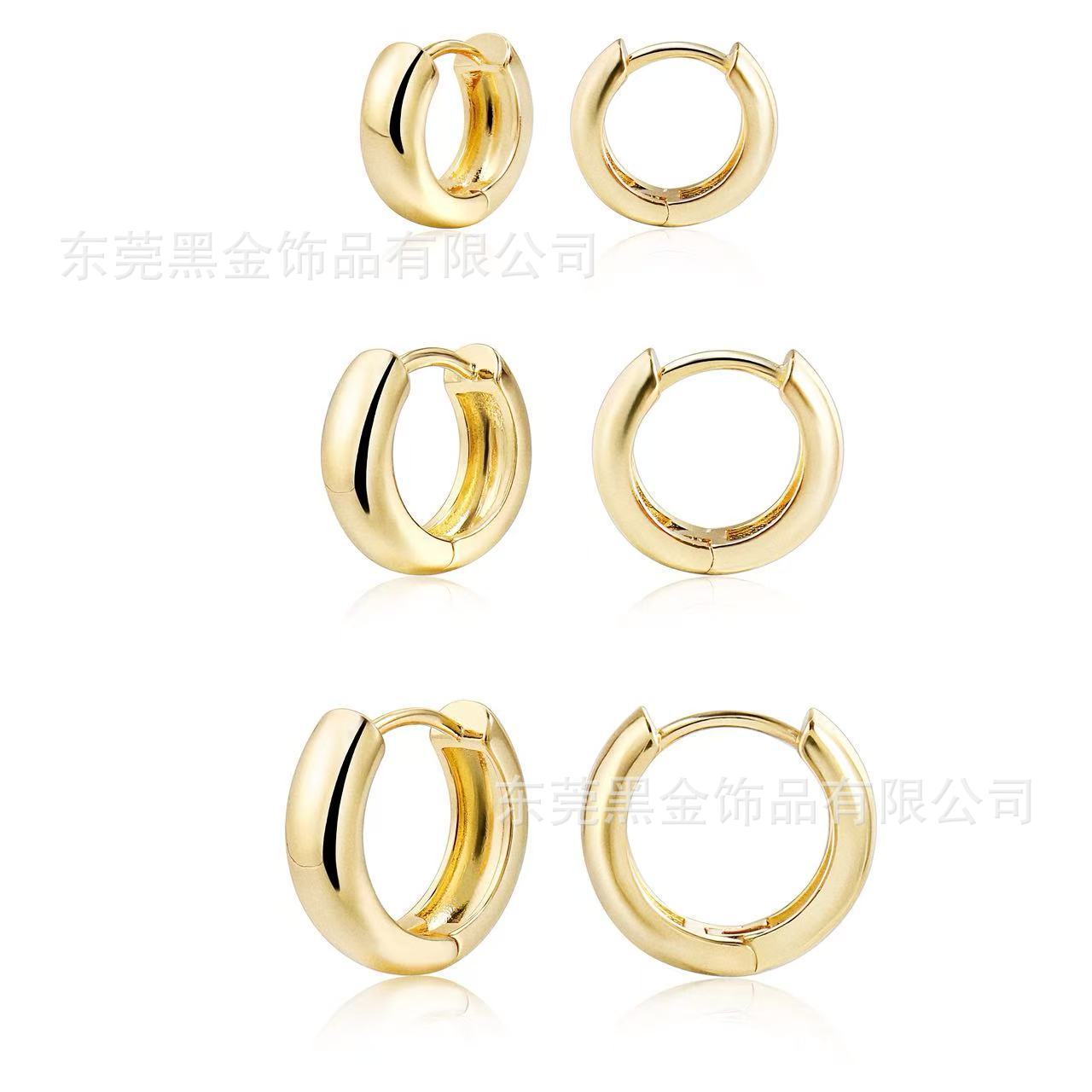 欧美跨境黄铜18k金宽面弧形耳环C形圆圈耳扣薄片质感简约耳饰品