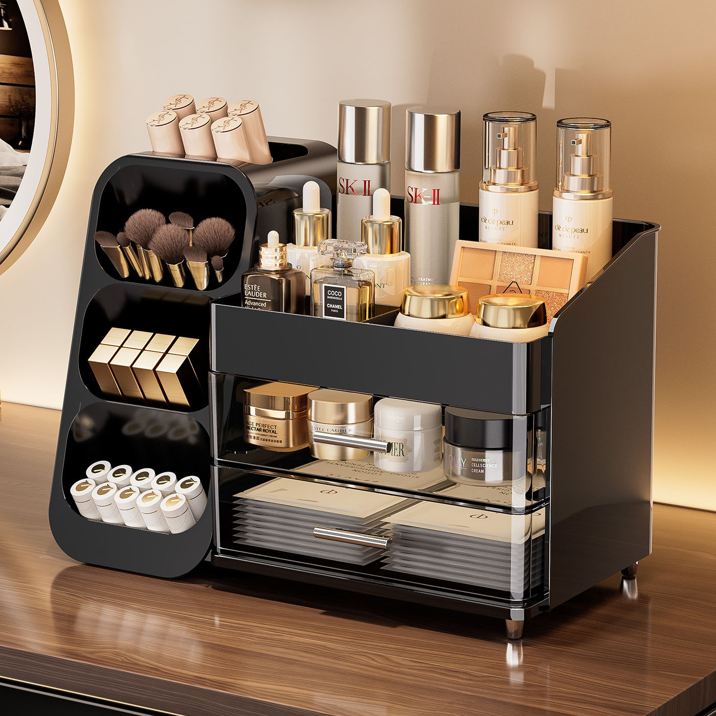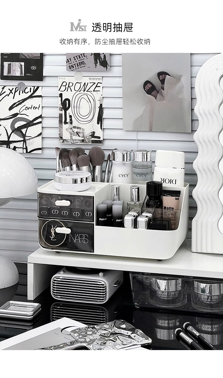 デスクトップ化粧品収納ボックス高級感口紅棚化粧台スキンケアブラシ整理引き出しケース