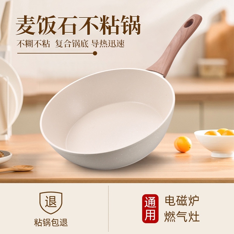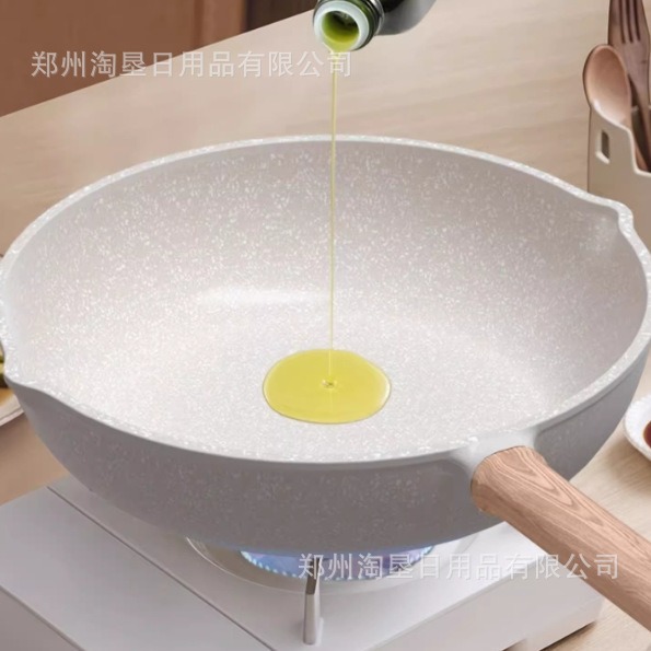 厳選-スーパー ノンスティック中華鍋 家庭用麦飯石色中華鍋 ディープノンスティック中華鍋