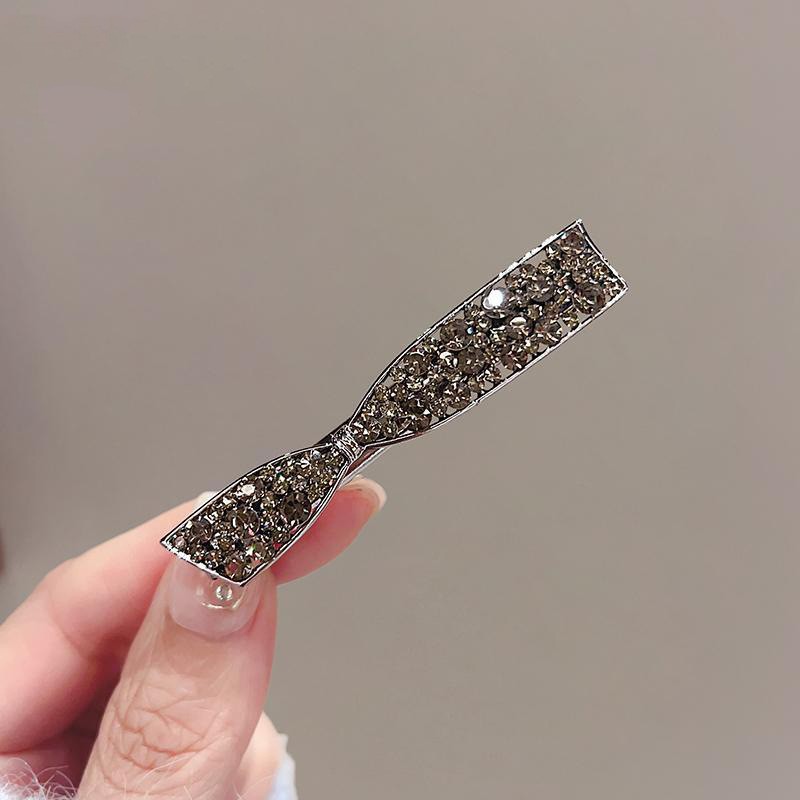 黒曜石ラインストーンサメクリップリボンヘアピンヘッドドレスハイエンド絶妙な小さなかわいい前髪ヘアアクセサリーグリッパートップクリップ