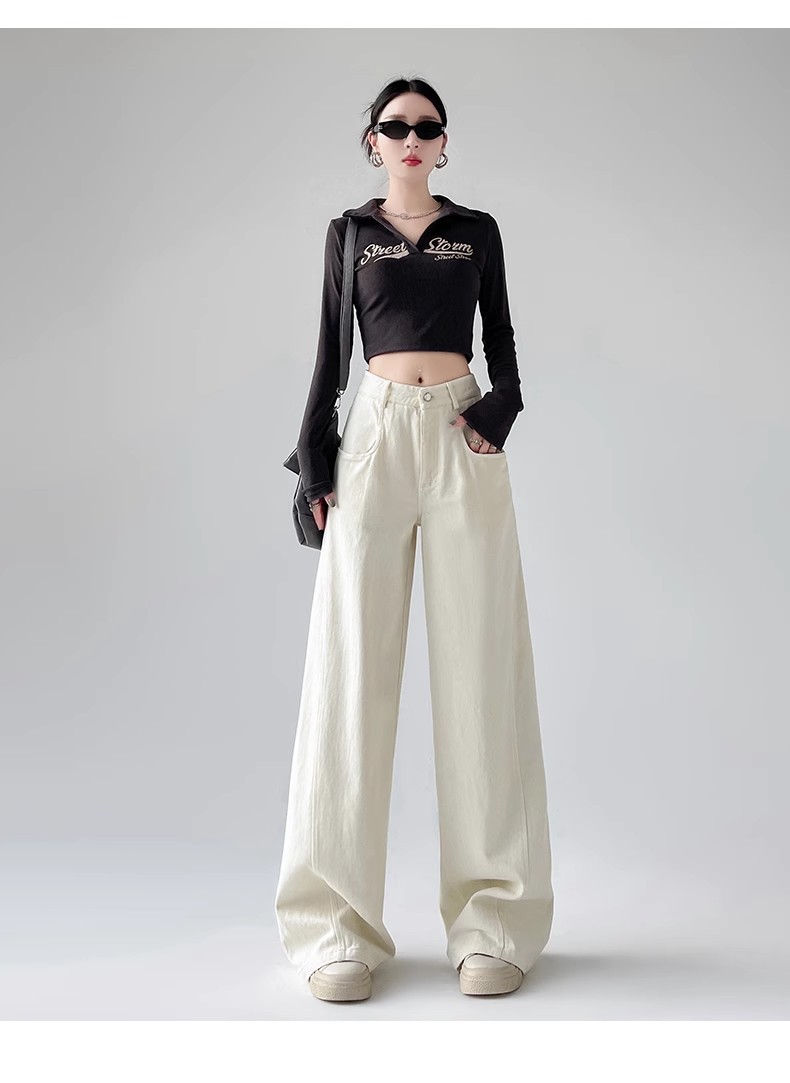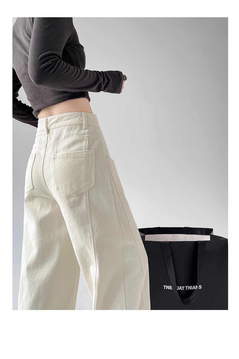 洋梨型体型の女性のためのカジュアルな白いワイドレッグジーンズ2025新しいハイウエストルーズ秋冬ドレープストレートパンツ