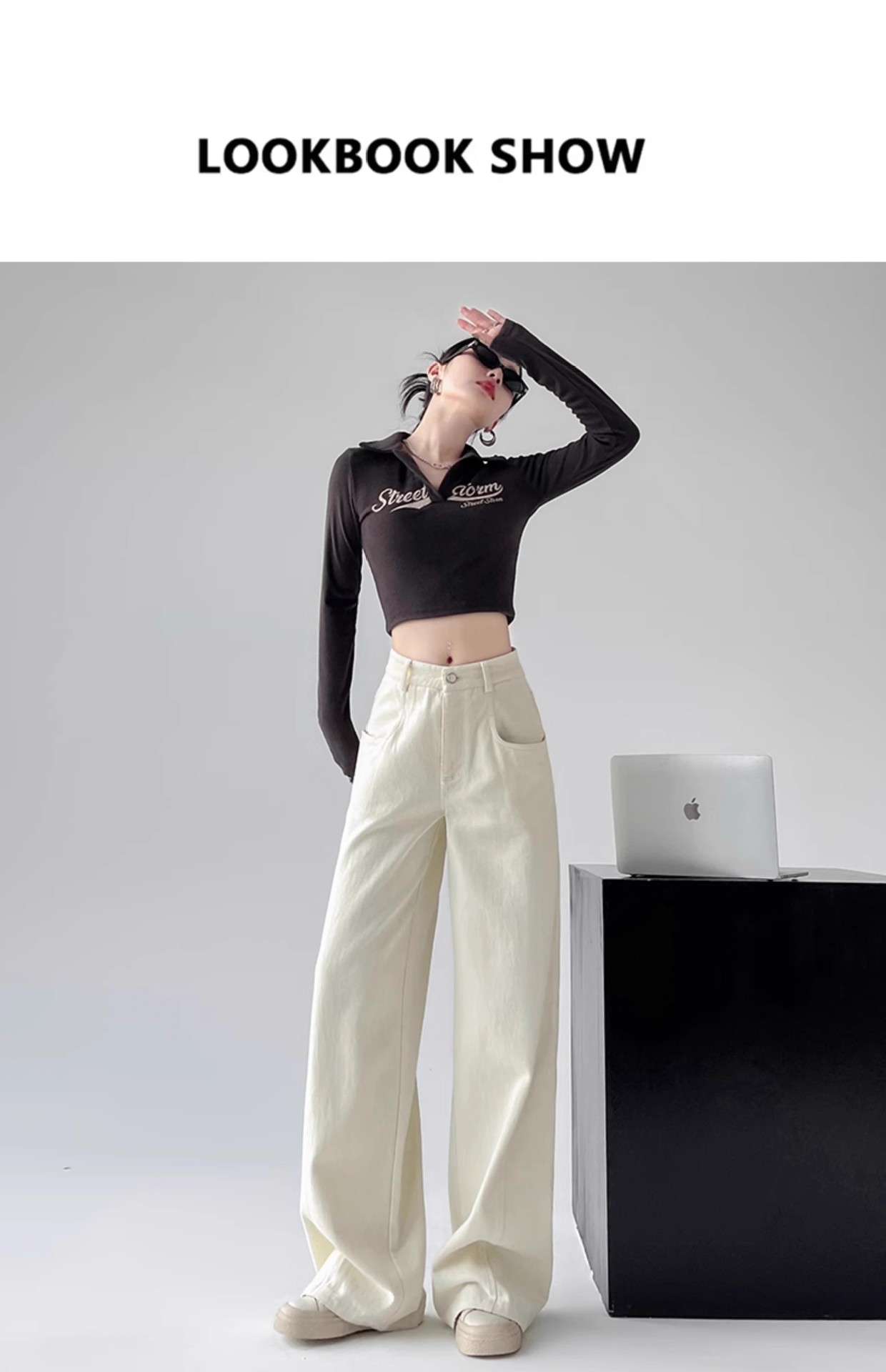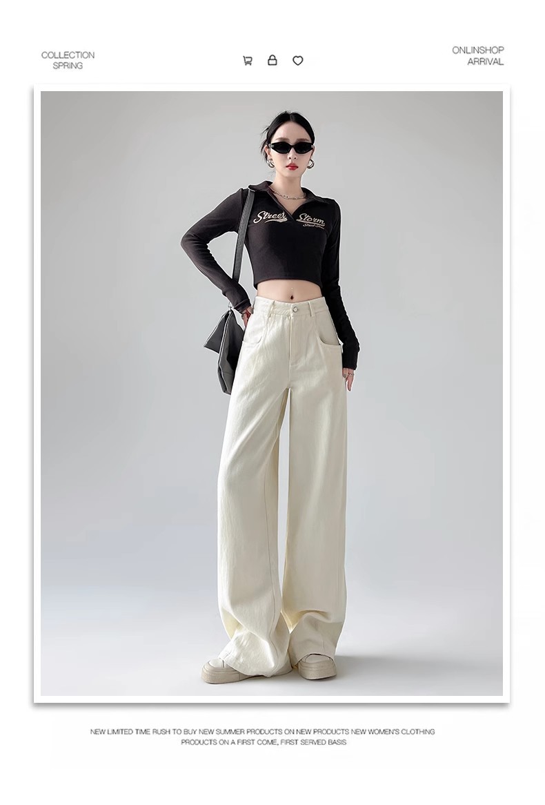 広脚ジーンズ女性夏春秋2025年新型薄いギャル白色のやせたデザイン感のあるストレートパンツ