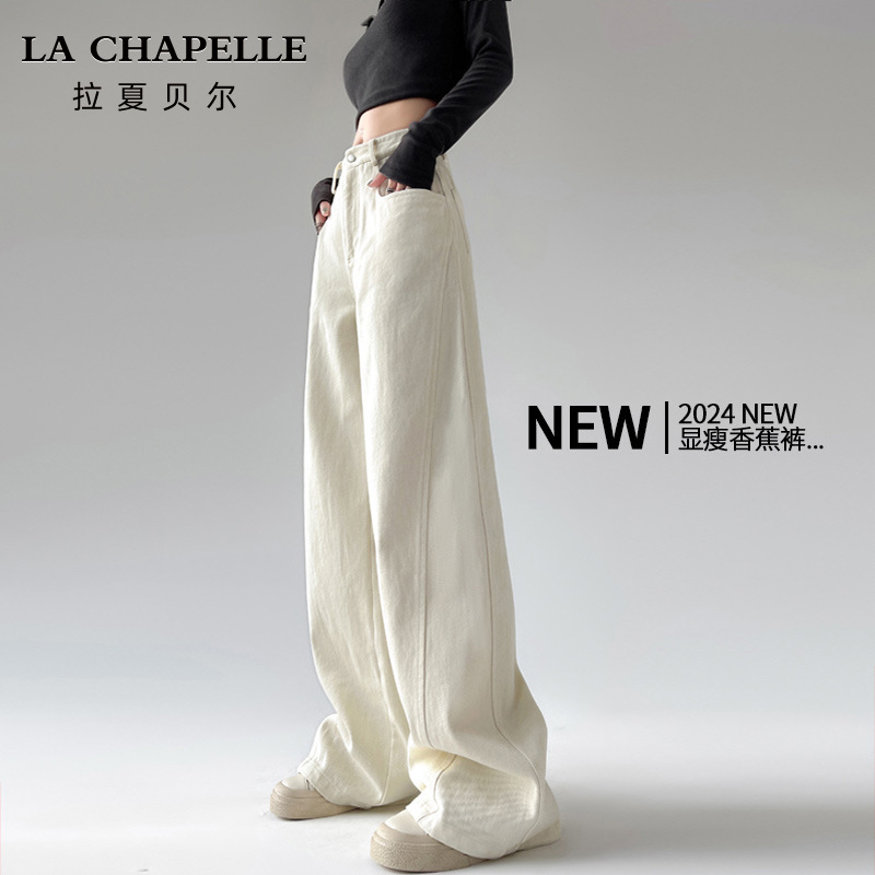 女性のための白いシミタジーンズ春、秋、夏の2025新しいルーズワイドレッグパンツスリミングナローバージョンバナナパンツ