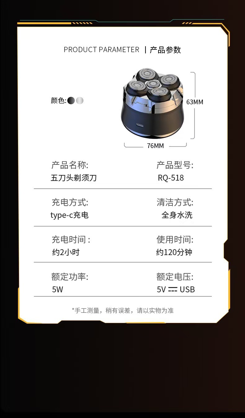磁気吸着式回転刃ヘッド、光沢仕上げバリカン、全身水洗い可能、Type-Cインターフェース、急速充電