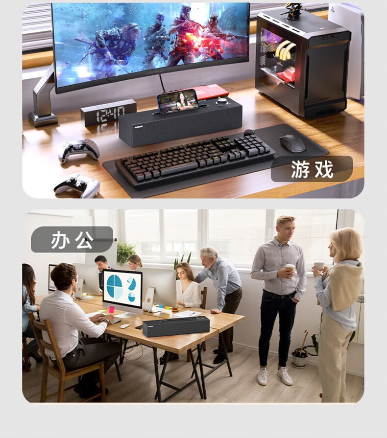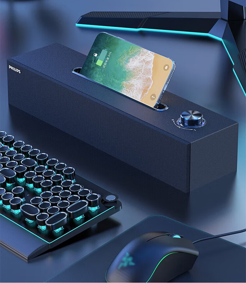 フィリップスSPA6109 bluetoothオーディオコンピュータデスクトップ家庭用デスクトップスピーカー有線RGBランプ効果ゲーム電気競争