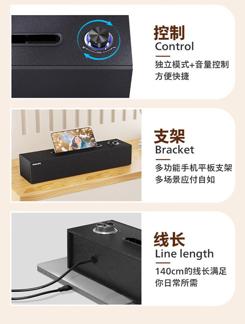 フィリップス Bluetooth スピーカー コンピューター オーディオ SPA3809 デスクトップ USB ノートパソコン デスクトップ マルチメディア 家庭 オフィス