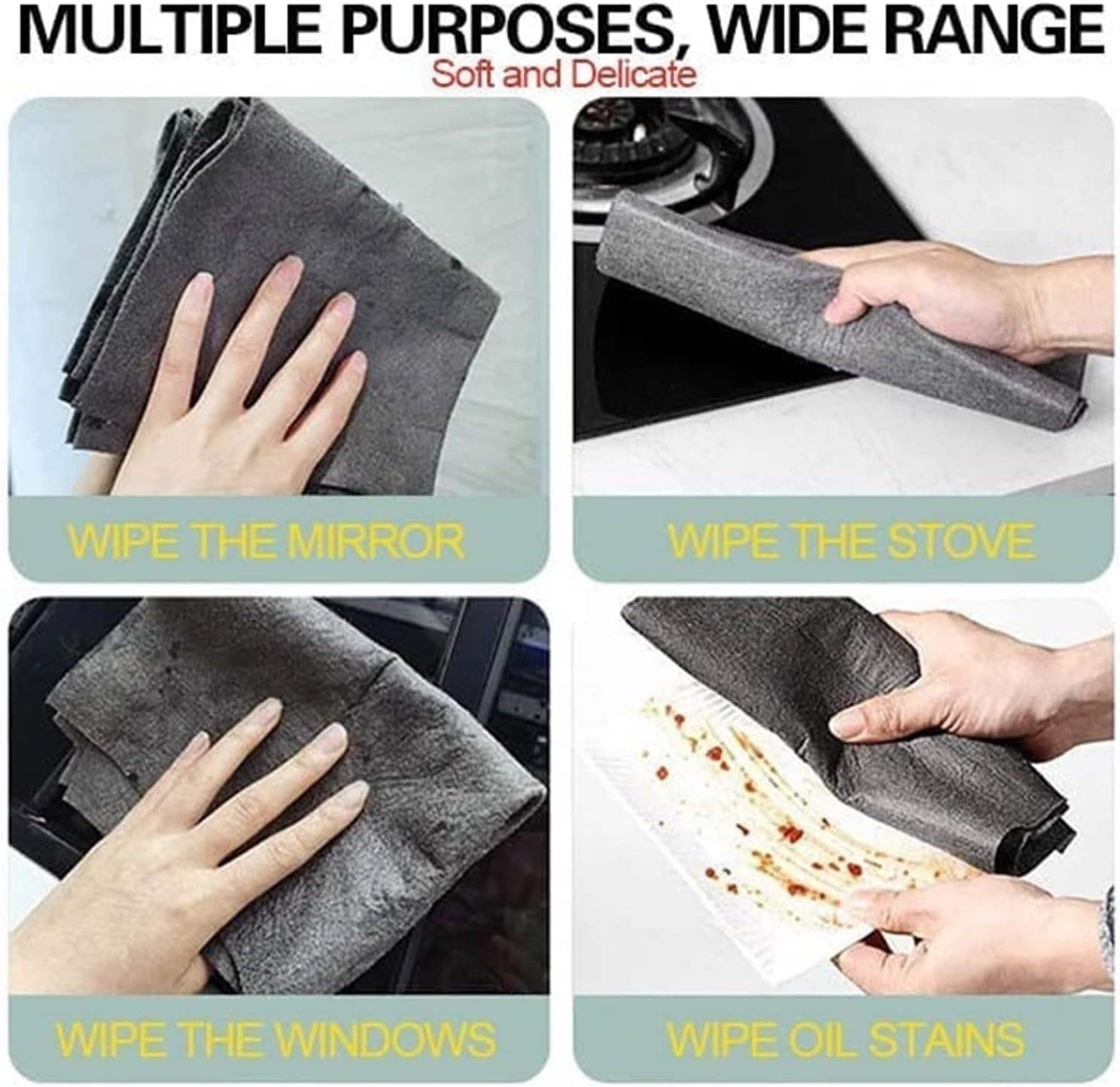 魔力雑巾黒厚い魔力布ガラス拭き怠け者雑巾吸水清潔透かしなし繊維雑巾