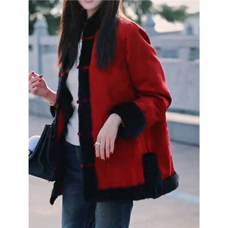 中国風トップス・ジャケット 秋冬新作 文芸風 気質ある 国風 レトロ 唐装 暖かい 赤色の綿服 新中国風