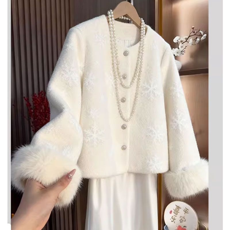 2025年秋冬季款法式气质高级感小个子小香风毛呢白色日常通勤上衣