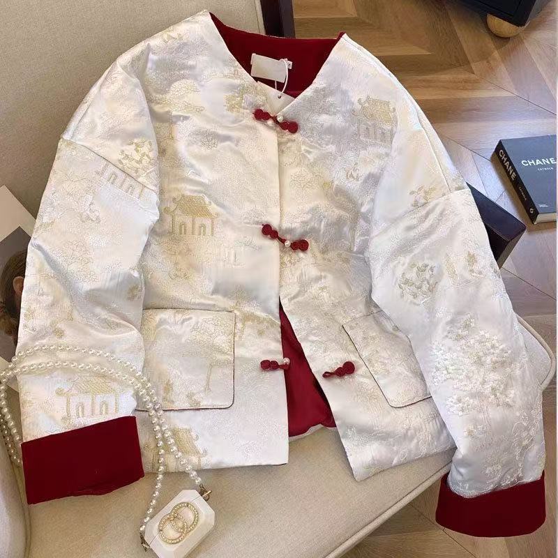 2025年秋冬新作改良版盤扣丸襟新中式民族風配色漢風エレガント万能ジャケット