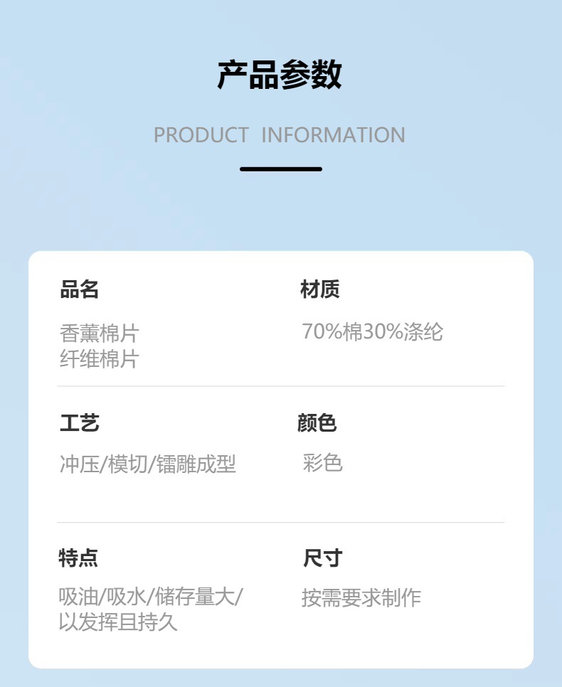 仕様とモデル ニーズに合わせて作る、カラー、吸収性コットンパッド,必要に応じて作る、カラー、アロマセラピーコットン,丸型; カラー; 吸収性コットンシート,円形; カラー; アロマセラピーコットンパッド,正方形; カラー; 吸収性コットンシート,正方形; カラー; アロマセラピーコットンパッド,特殊形状; カラー; 吸収性コットンパッド,特殊形状; カラー; アロマテラピーコットンパッド