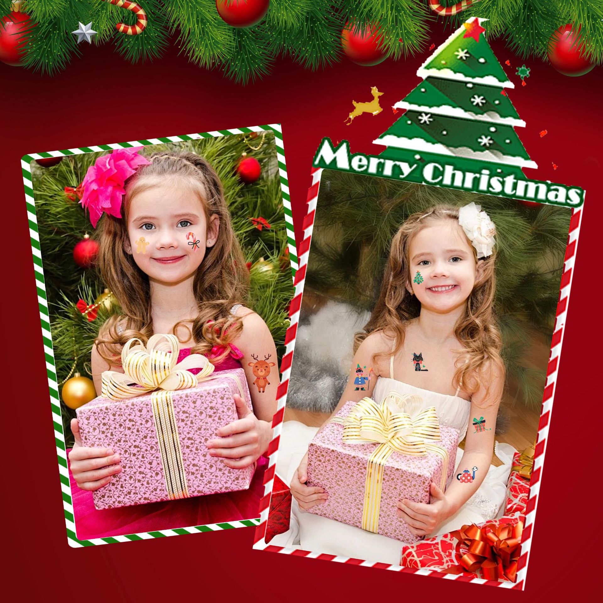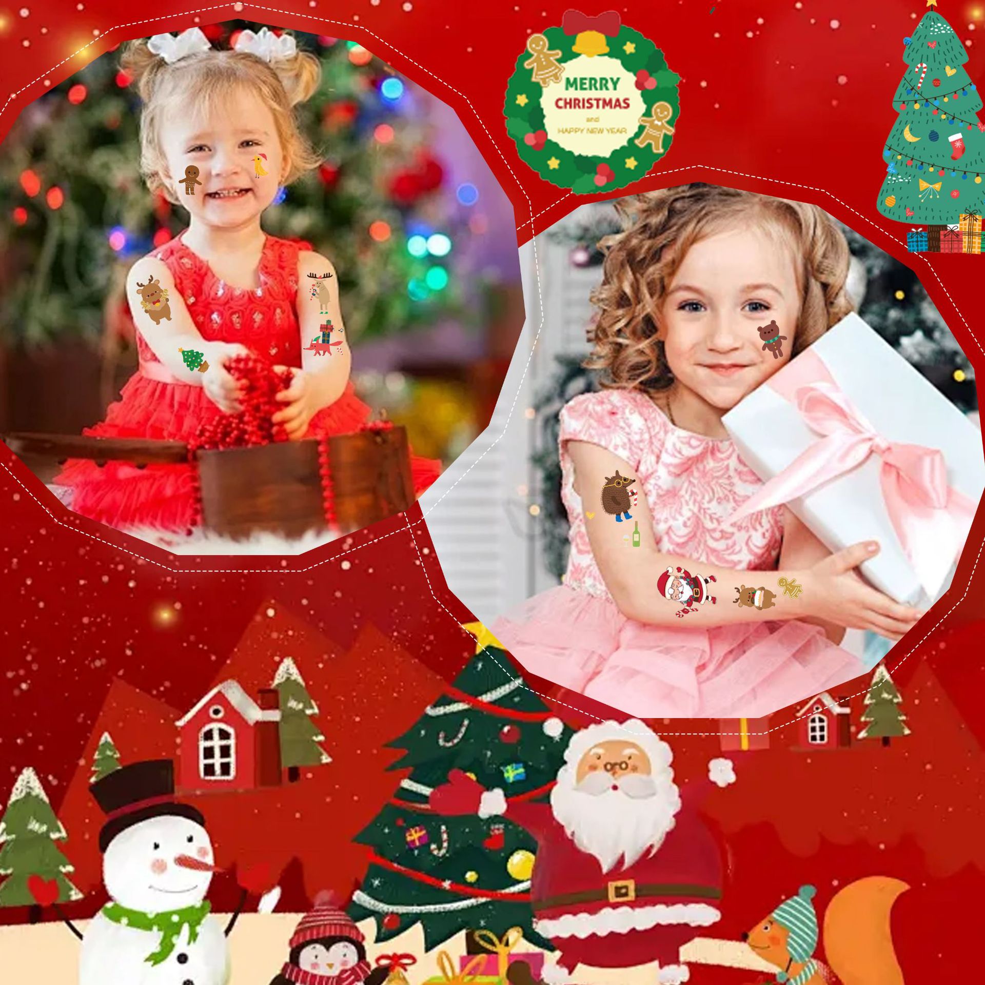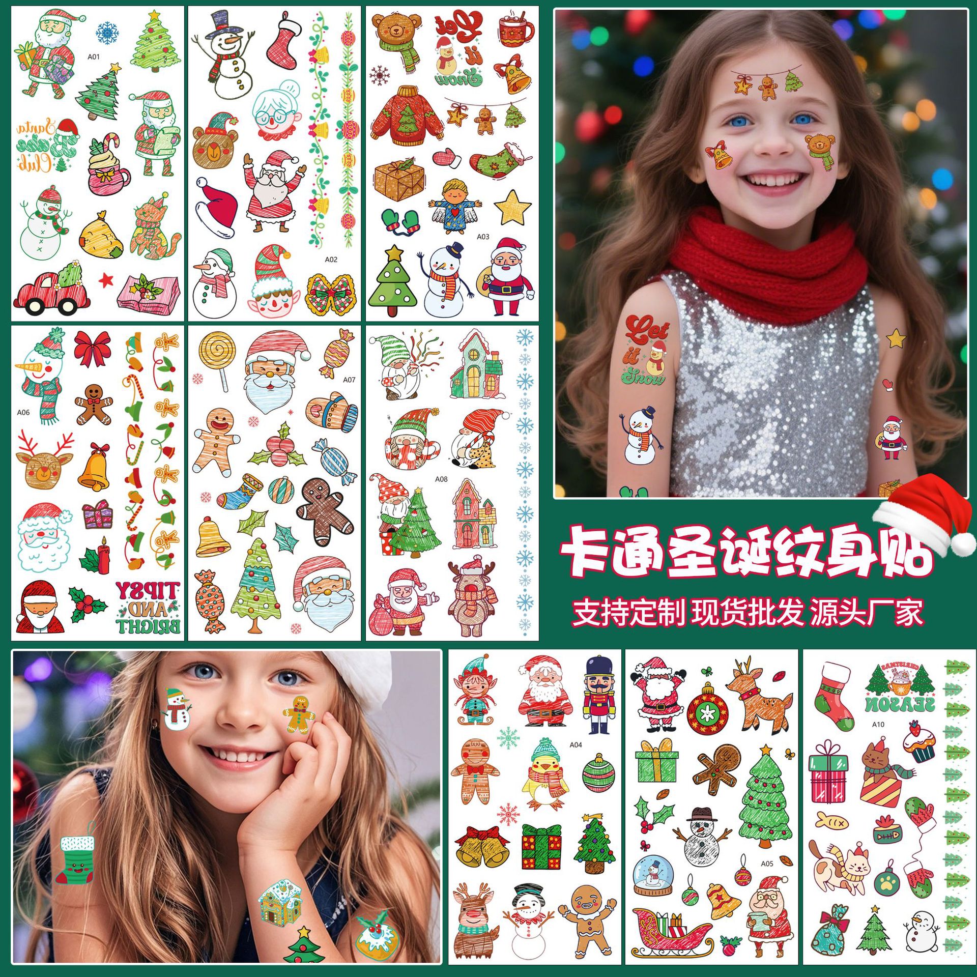 クロスボーダー新作クリスマスステッカー子供用ステージメイクアップフェイスステッカーパーティーステージパフォーマンス洗えるタトゥーステッカー
