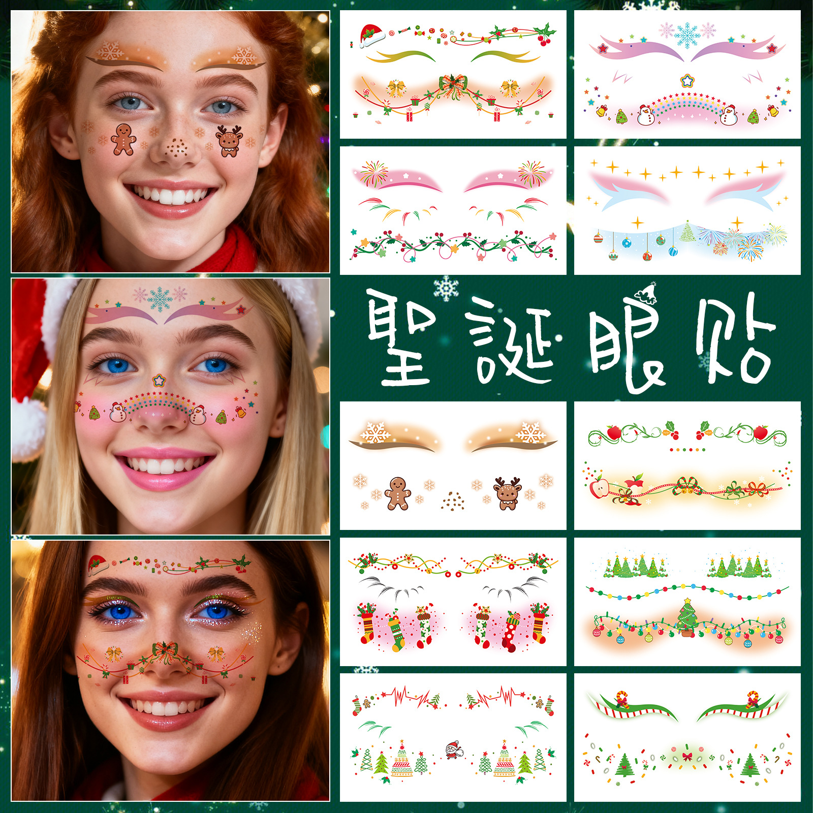 跨境新品圣诞节妆容脸贴高级感可爱卡通眼角面部装饰临时纹身贴纸