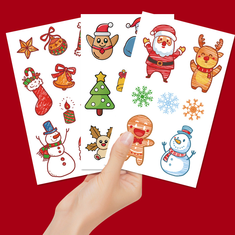 国境を越えた新しい漫画風クリスマスタトゥーシール、子供向けのかわいいサンタクロースギフト、雪だるまの一時的なタトゥーシール