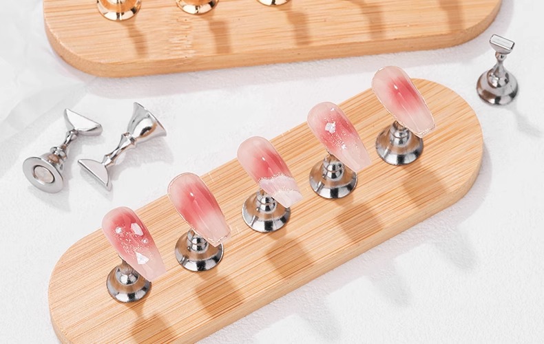 ネイル練習台甲托原木日本式シンプル金属指托甲片托版美甲店専用工具