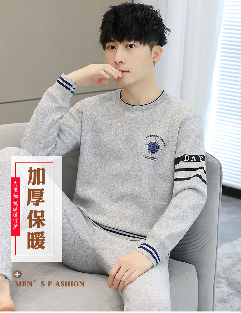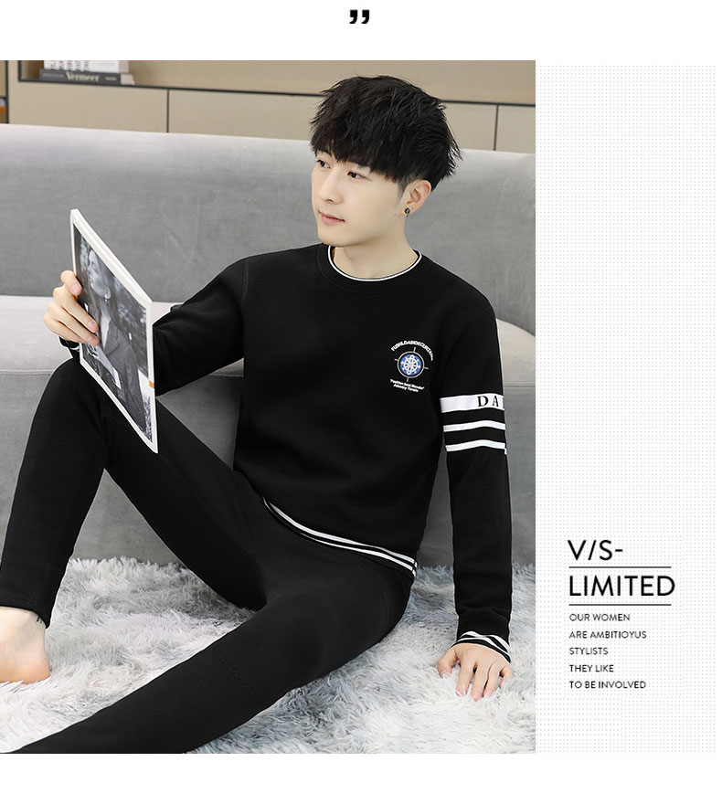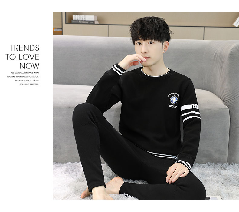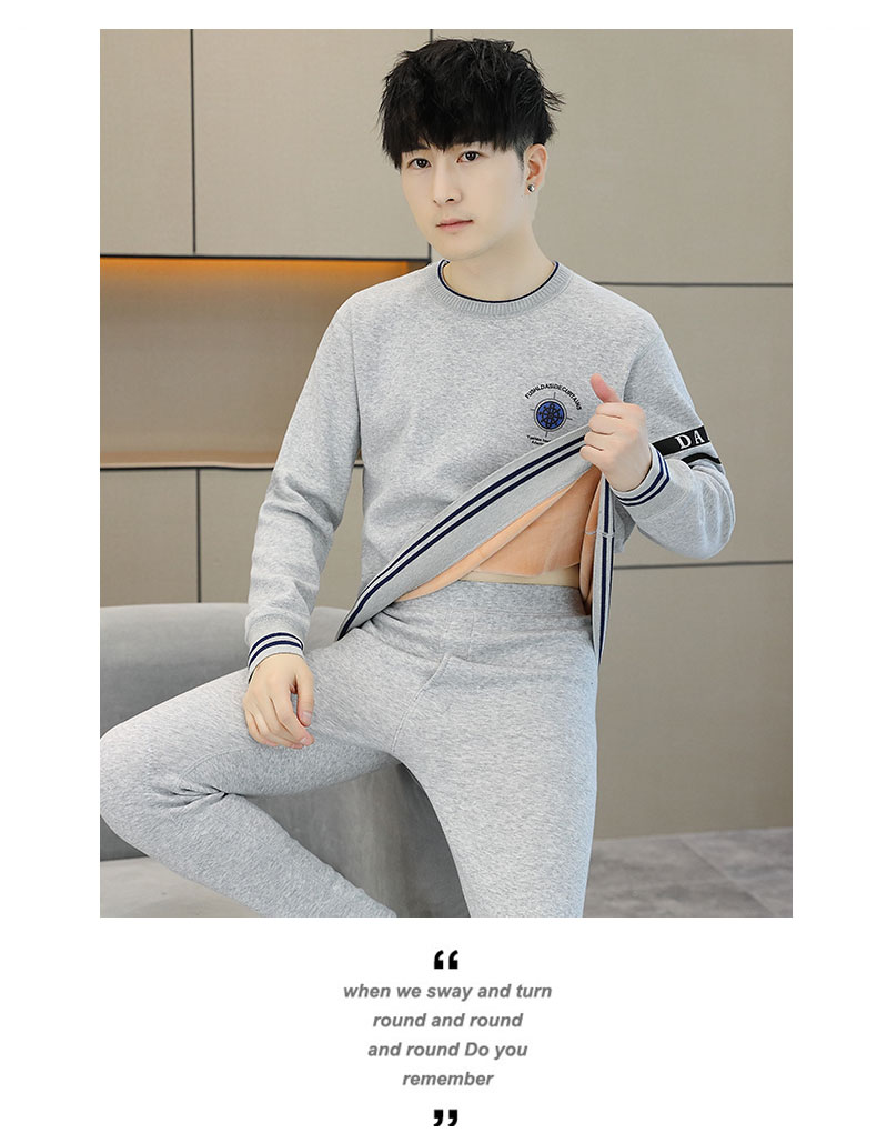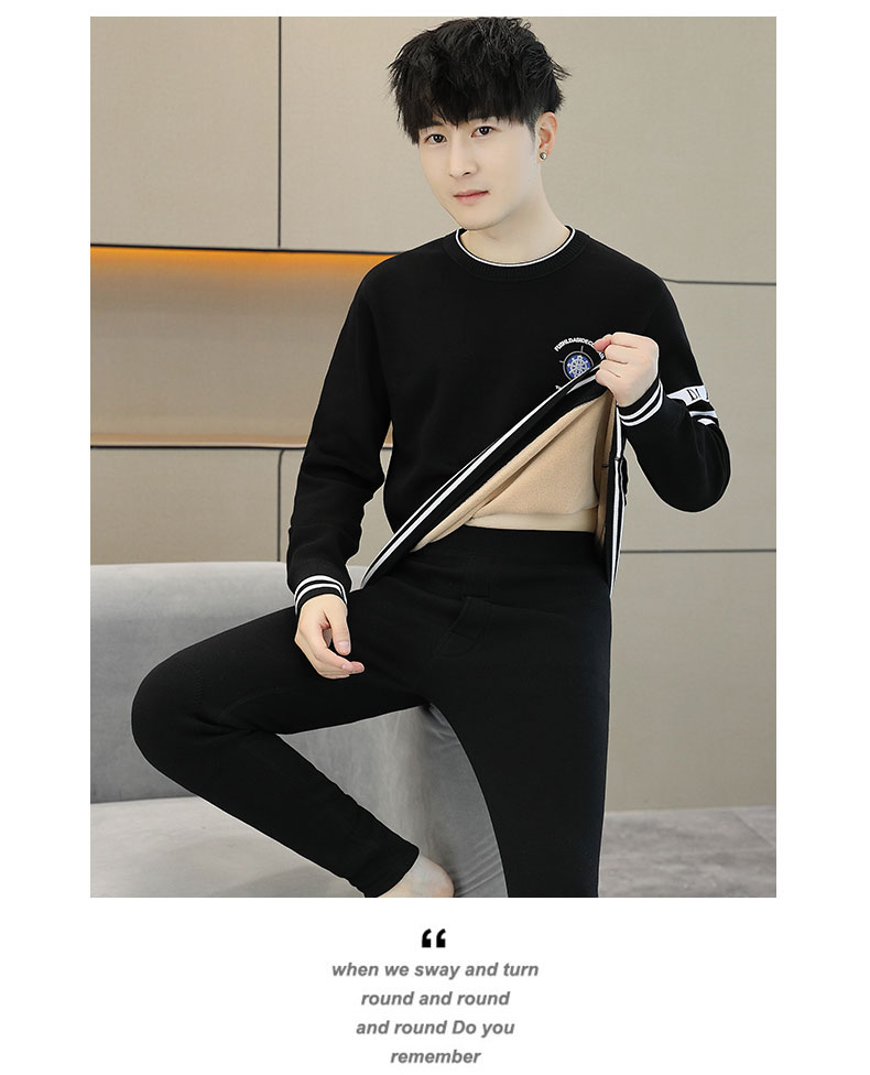 加绒保暖内衣套装青年防寒高级感刺绣圆领婴儿绒秋衣秋裤男士一套