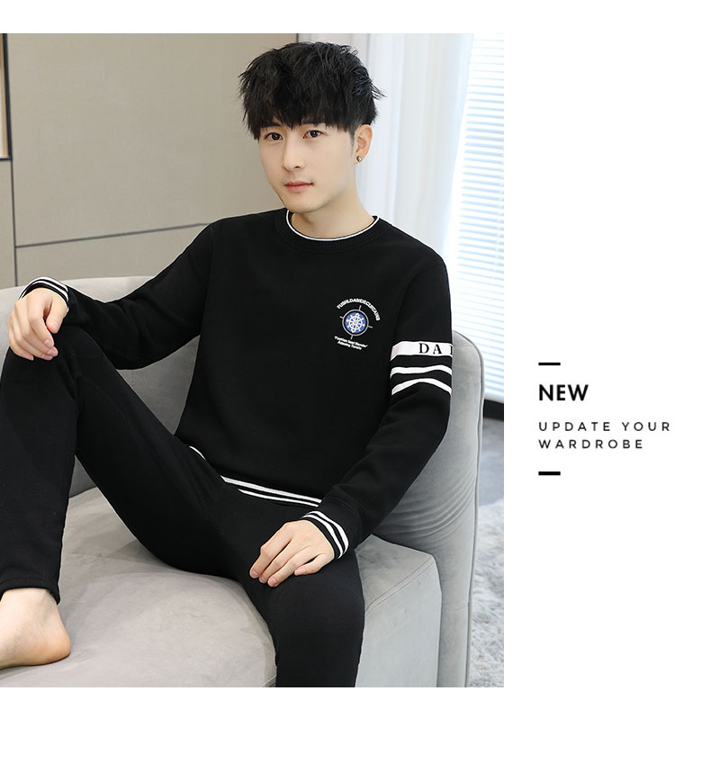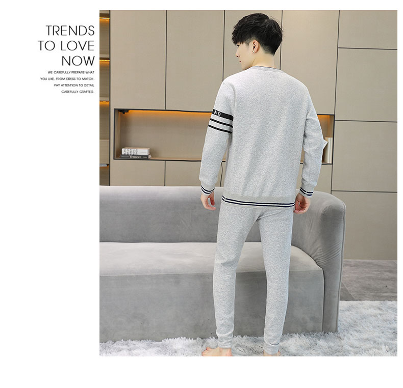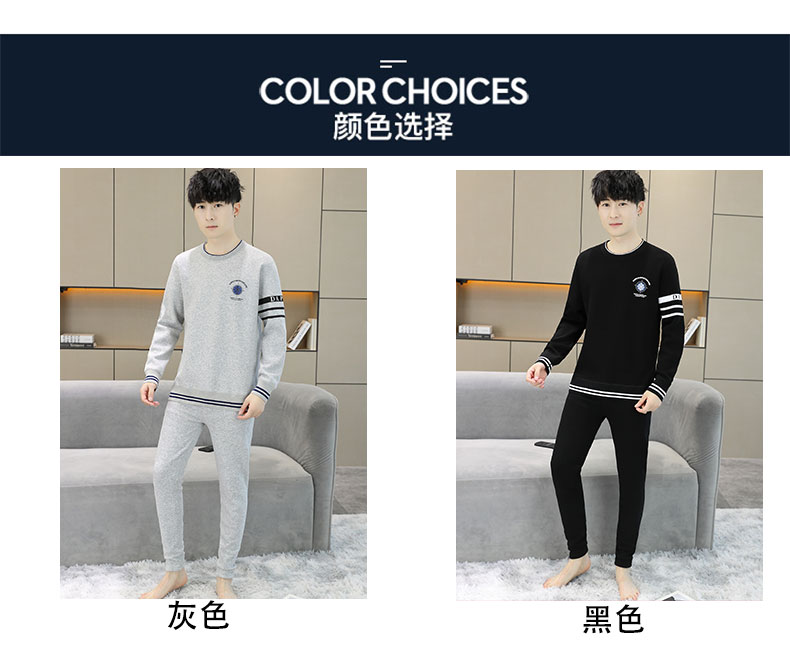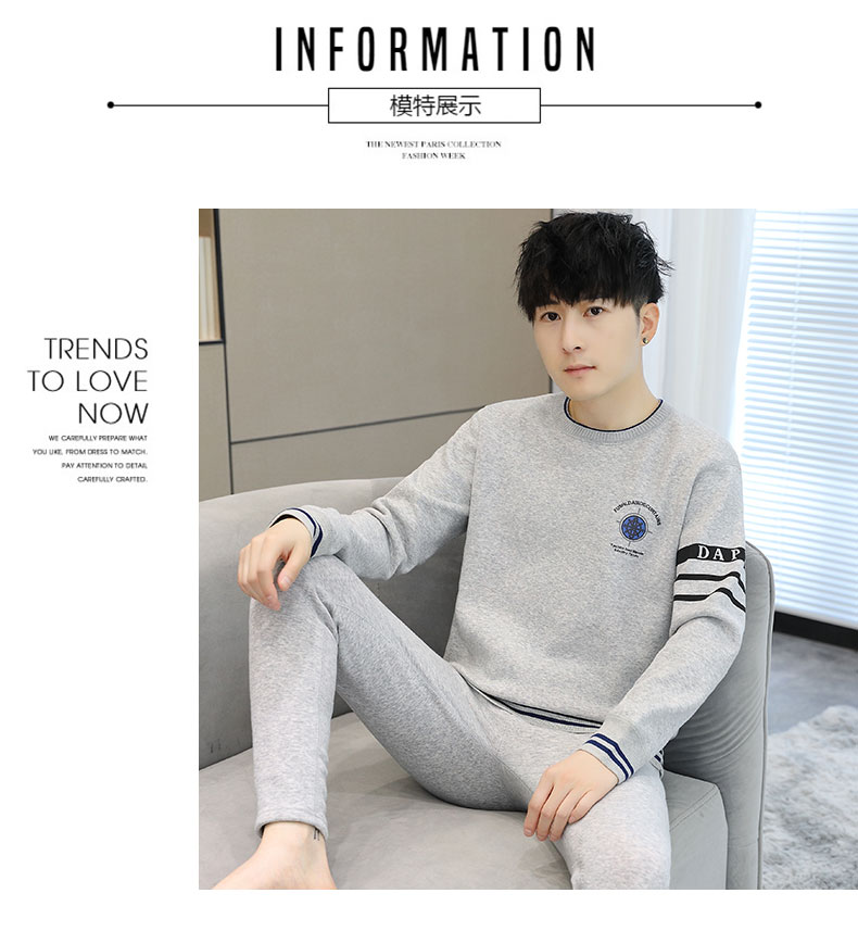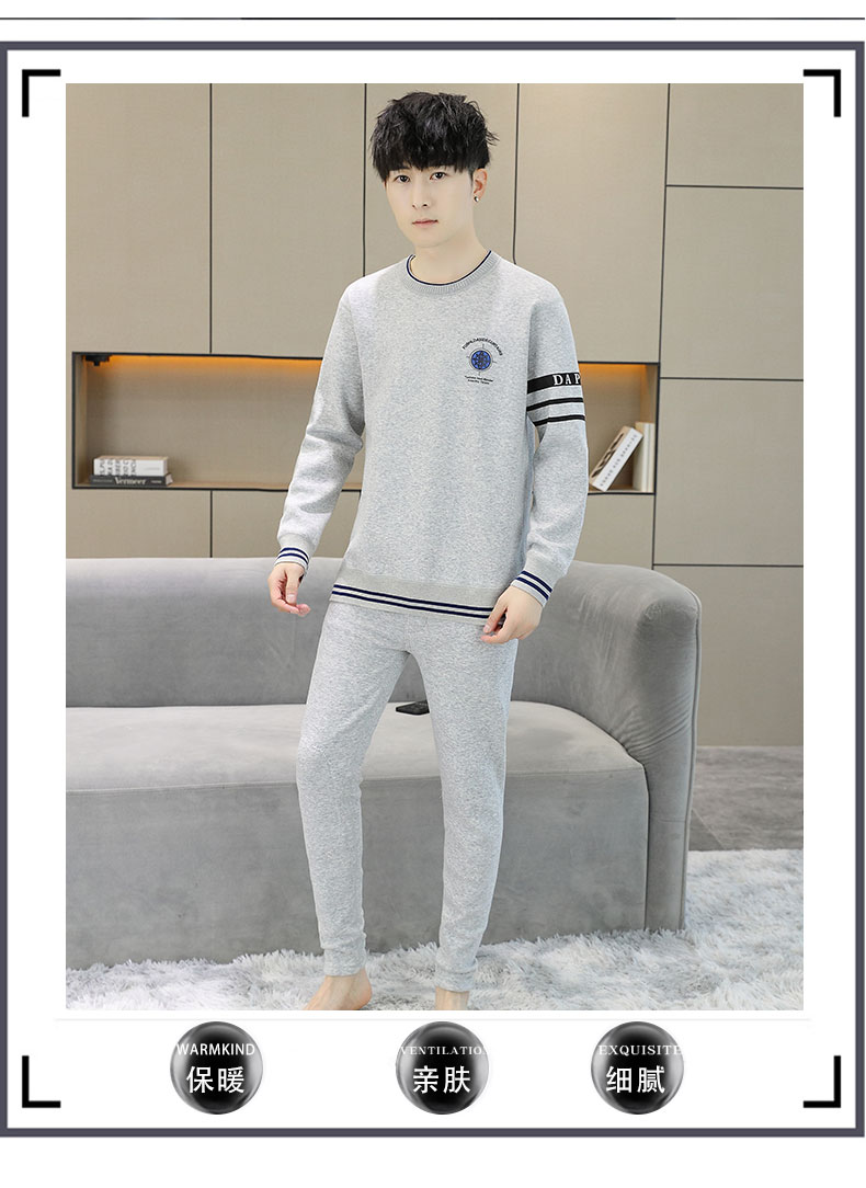 加绒保暖内衣套装青年防寒高级感刺绣圆领婴儿绒秋衣秋裤男士一套