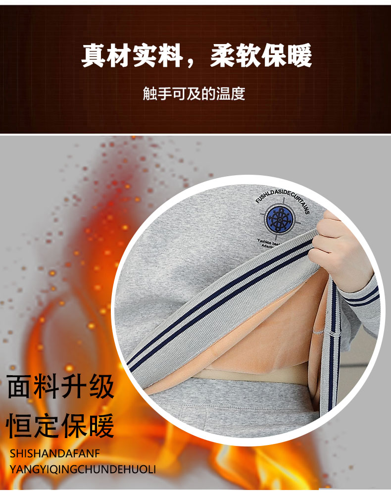 青少年保温下着セット男性冬にベルベットをつけて高校生の防寒純綿男性綿セーター男性モデルを厚くする