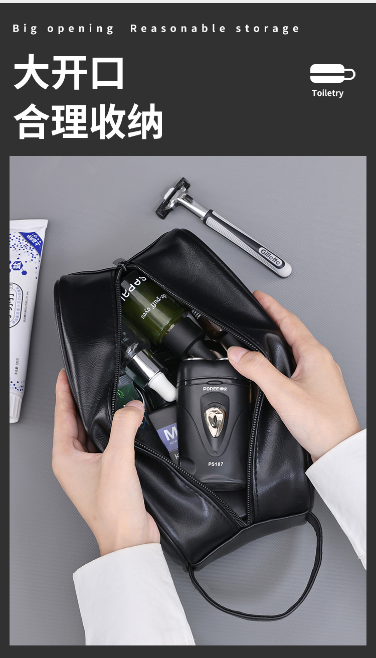 クロスボーダー旅行出张用品アウトドアメンズ洗面バッグpuポータブル手提げポーチ大容量高级感