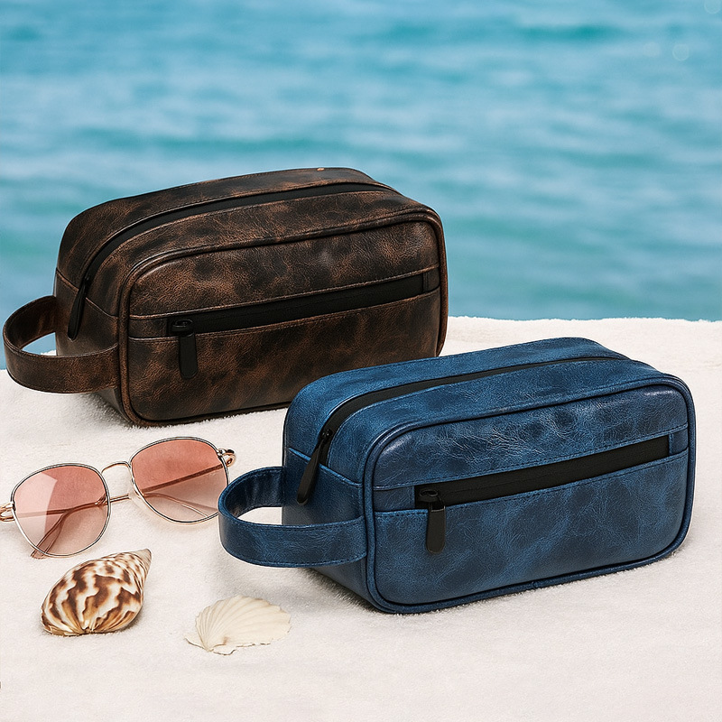 新款多功能pu防水化妆包高级感男士洗漱包复古旅行洗漱用品收纳包