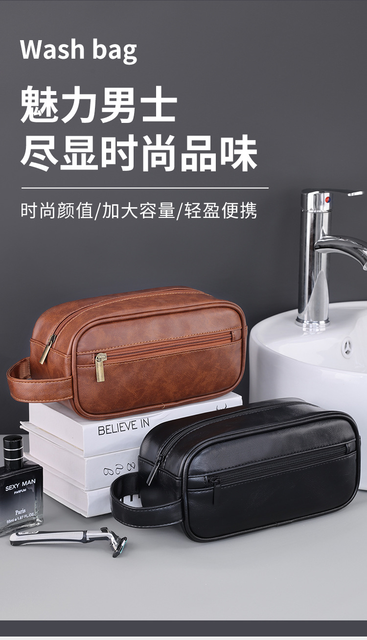 クロスボーダービジネス旅行出张アウトドアメンズ洗面バッグpuポータブル手提げポーチ大容量高级感