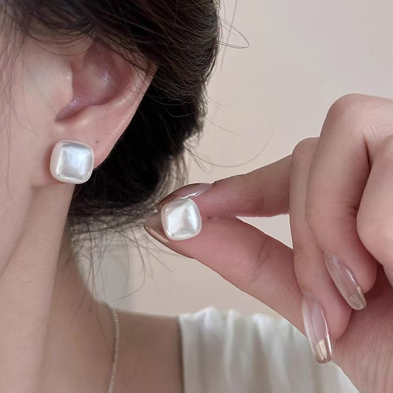 イヤリング卸売 2025年新作 キュートな方糖風イミテーションパールイヤリング 軽やかな高級感 多用途イヤリング 女性用